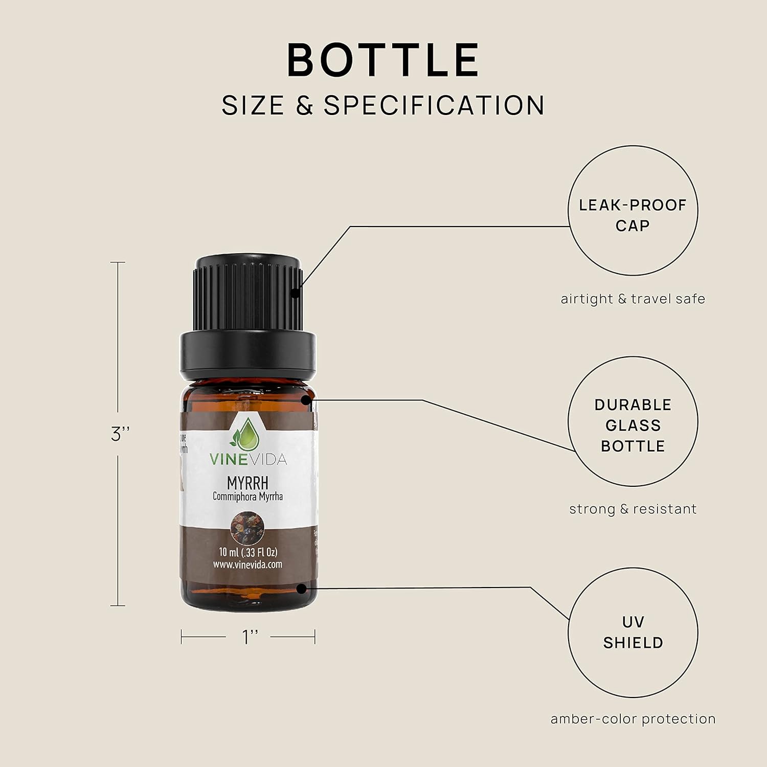 VINEVIDA Myrrh Essential Oil 10 mL - Undiluted, Pure, Vegan, Reusable Glass Bottle