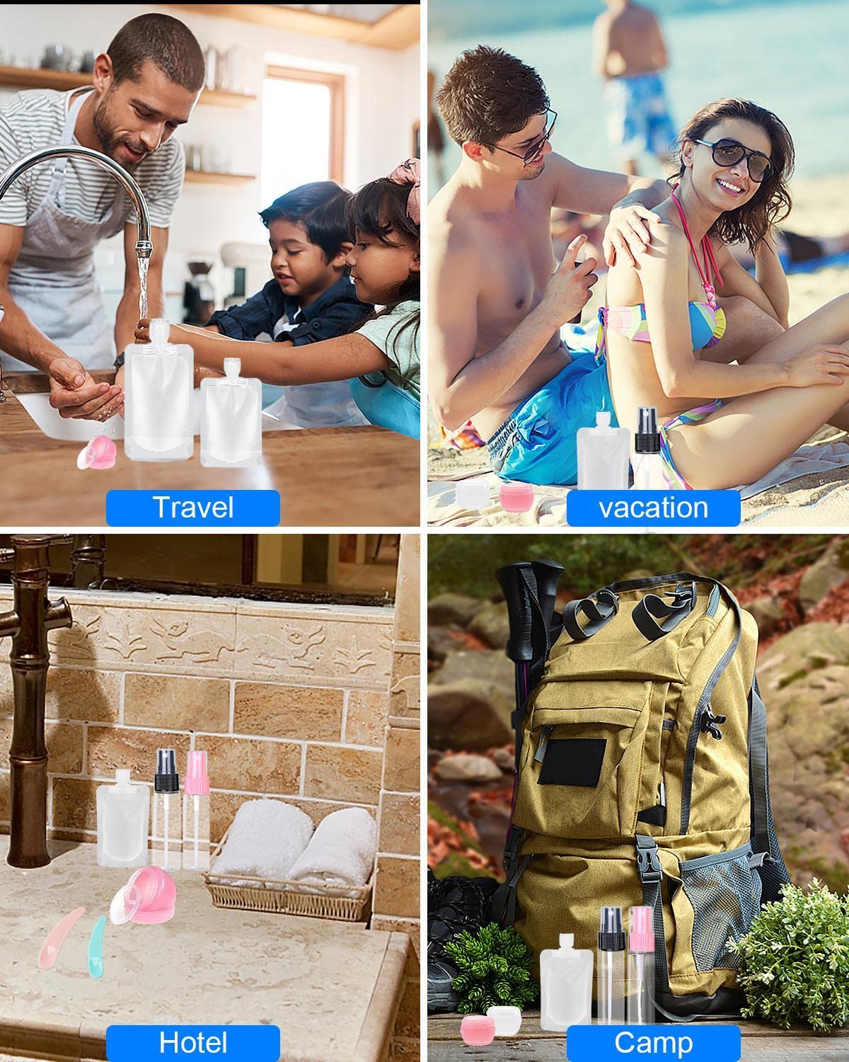 - 【Easy to Refill, Clean And Portable】This sweet travel size Pouches has a wide opening design, easy to fill, just unscrew the top cap, so that we can easily refill the liquid or clean the inside. The small spoon and small funnel can help you fill or clean out more easily.Enjoy the cheerful offered by these Travel Bottles Set manner for an extended period of time.
