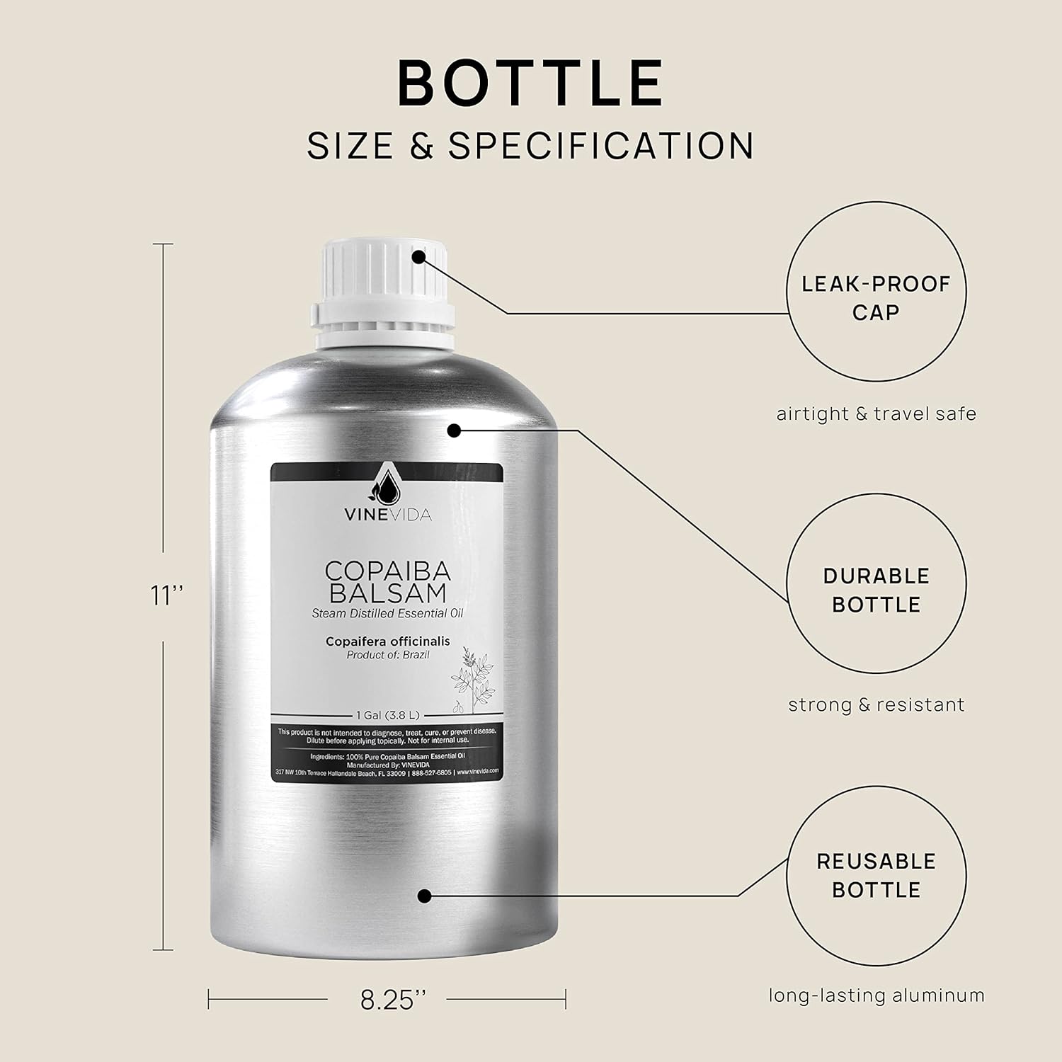VINEVIDA Copaiba Balsam Essential Oil - Gallon Copaiba Balsam Oil Undiluted - Bulk Gallon Essential Oil for Soap Making Safe for Skin - DIY Candle Scents for Candlemaking Scents - 8 lbs