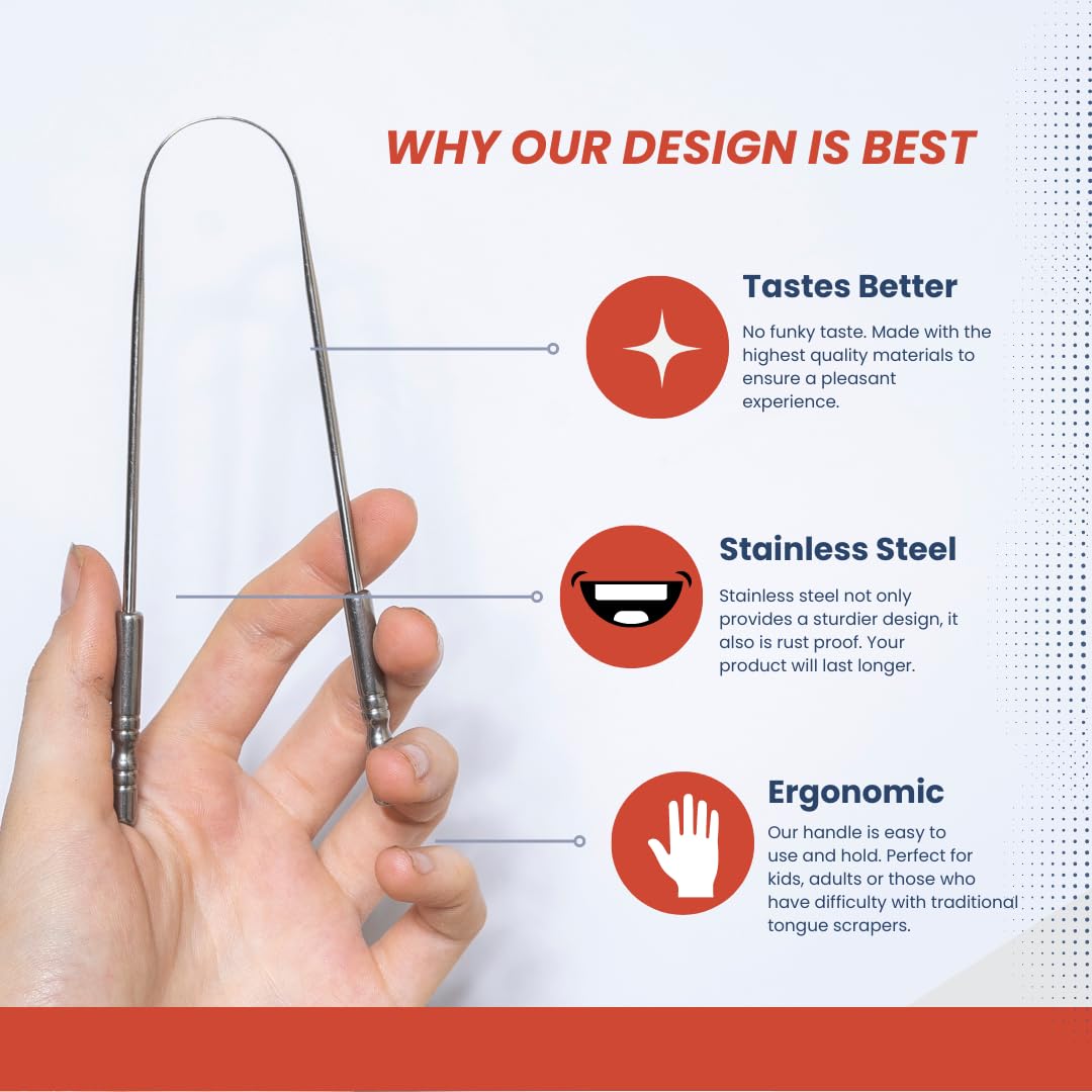 - Stainless steel tongue cleaner for adults- better alternative to brush cleaner is tough on gunk and plaque. Tongue scrapers (tounge scraper) for pesky white coated layer removal and healthy tongue.