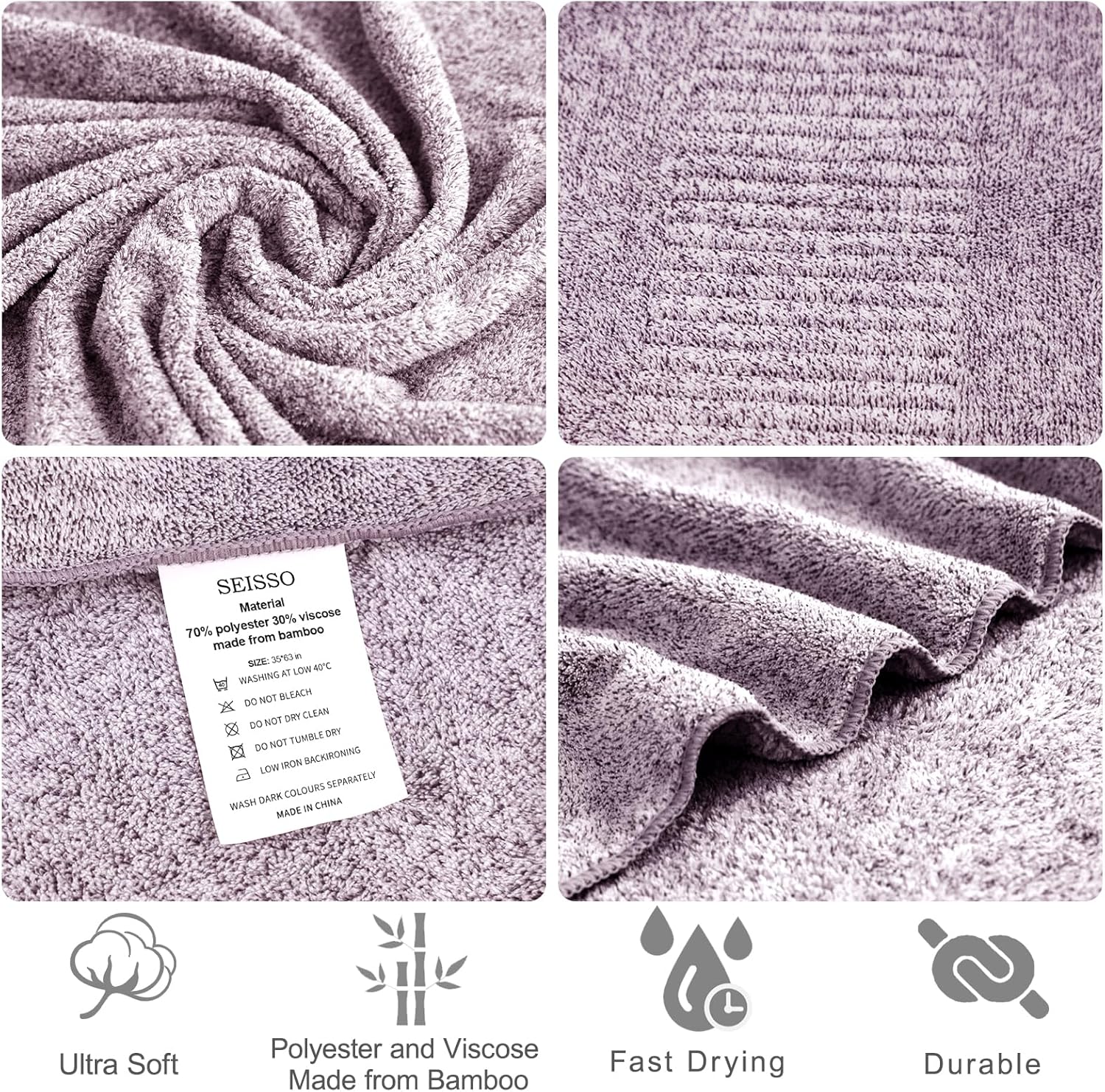 - Premium Material: Bath towel set includes 4 pieces of 35x63 inch bath towels, each towel is made of 70% polyester and 30% viscose made from bamboo, the extra large bath towels is tough and durable, skin-friendly and breathable, and has a long service life. It still retains its original softness after multiple washes.