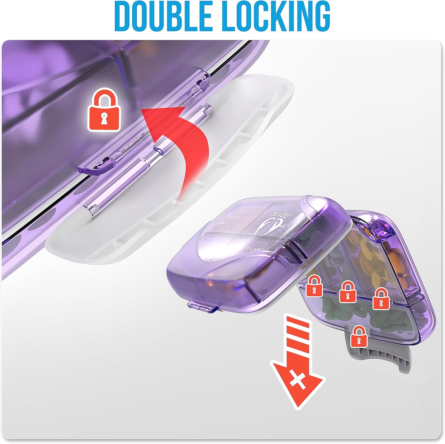 - Safe lock - the dependable lock carrier is equipped with a more secure locking mechanism compared to inexpensive boxes. Its sturdy latch ensures it remains closed, while separate covers provide extra protection. Rest assured, your pills will stay in place and won't spill out in your bag unintentionally