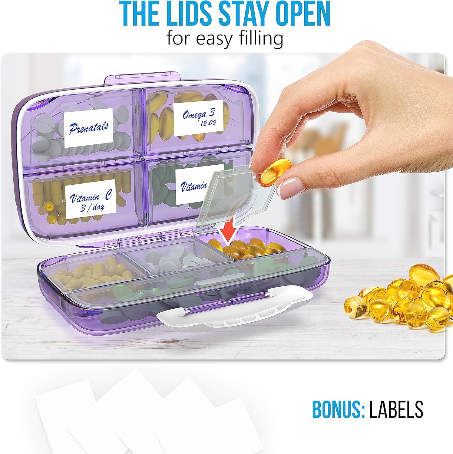 - High capacity - despite its size, the vitamin sorter features 8 large compartments that can hold a significant number of pills. You can fit fish oil or other big supplements in it