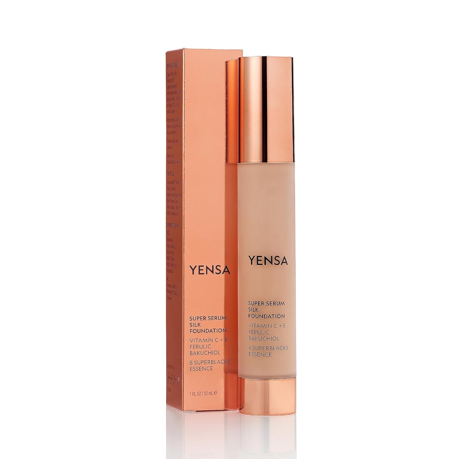 YENSA Serum Foundation Makeup - Super Silk Full Coverage Foundation Enriched with Peptides, Vitamin C & Ferulic Acid to Help Reduce Fine Lines, Wrinkles & Dark Circles - Tan 1 (1 oz)