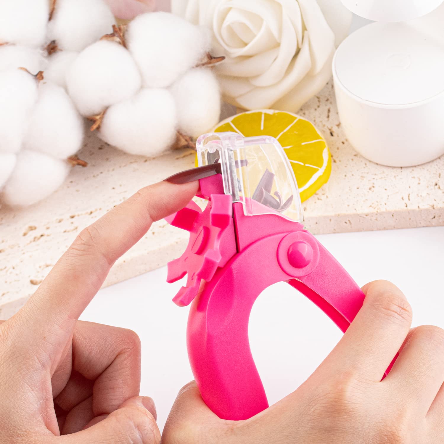 Hot Pink Acrylic Nail Clipper, Dial Clippers with Sizer, Adjustable Nail Tip Cutter with Length Measurement, Stainless Steel Acrylic Nail Tips Trimmer for Fake Nail Art Manicure Home DIY by GA&EN