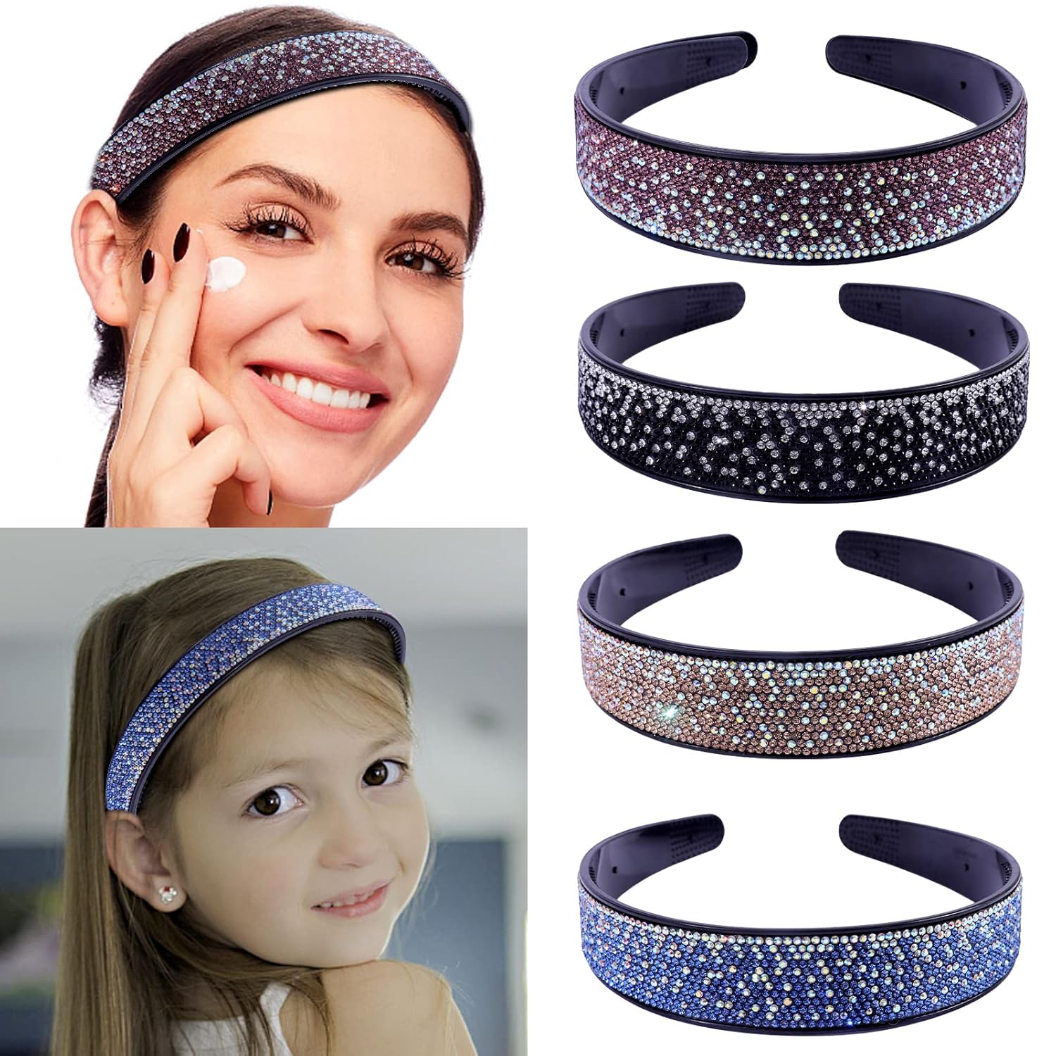 Rhinestone Headbands for Women Sparkly,4PCS Tie Dye Crystal Headband Non Slip,Tooth Hair Bands Rhinestone Hair Hoop,Comfortable Daily Prom Party Head Accessories