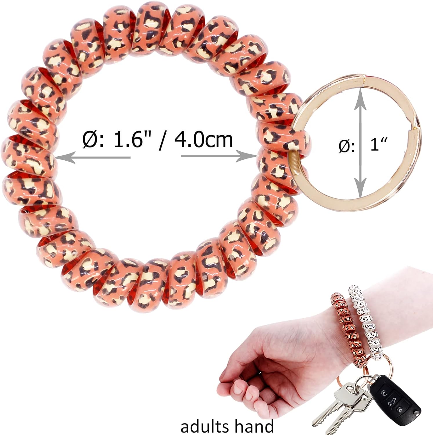 - High quality wristband :1.6 inches inside diameter spiral wristband fits most adults wrist with a 0.98 inch metal key ring to hold keys,number bands.