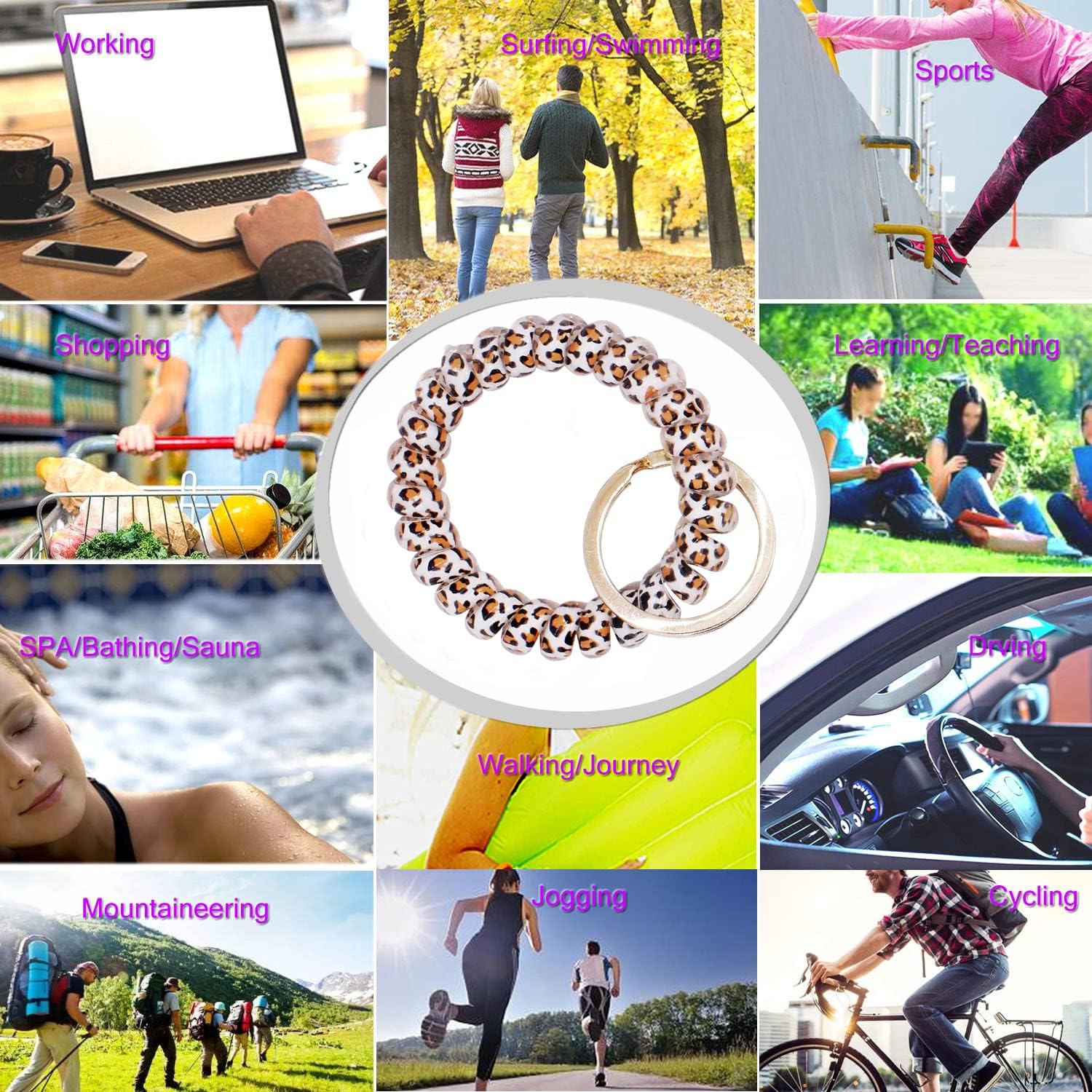 - Applicatin:wrist coil can be used in outside and inside,to work with security ID badge and key of home,office,workshop,mall,gym,pool,sauna, beach,ect,to wear during shopping,swimming,walking,sports,driving,cycling,traveling and so on.