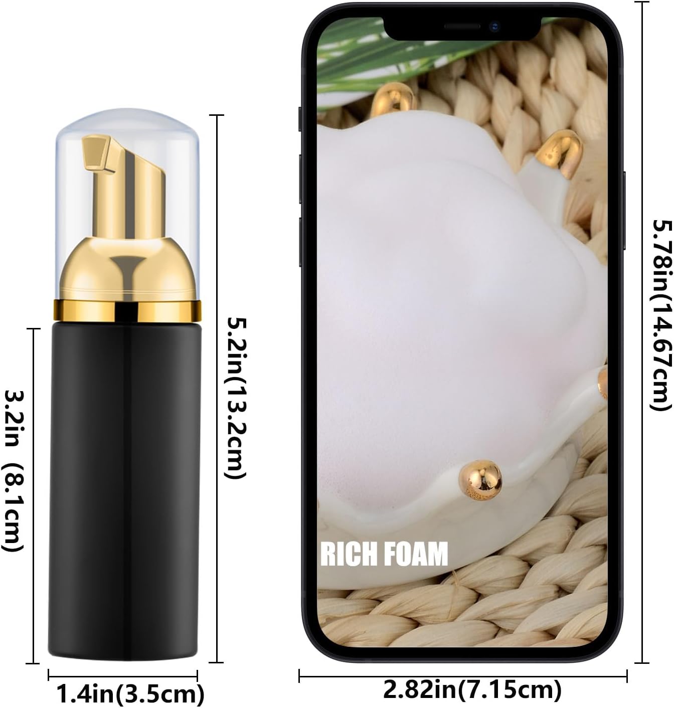 KOIBITO 2 Oz Black Foam Pump Bottle, Empty Lash Shampoo Bottles, Travel Foaming Dispenser for Hand Soap,Body Wash(50 PCS, Clear Cap)