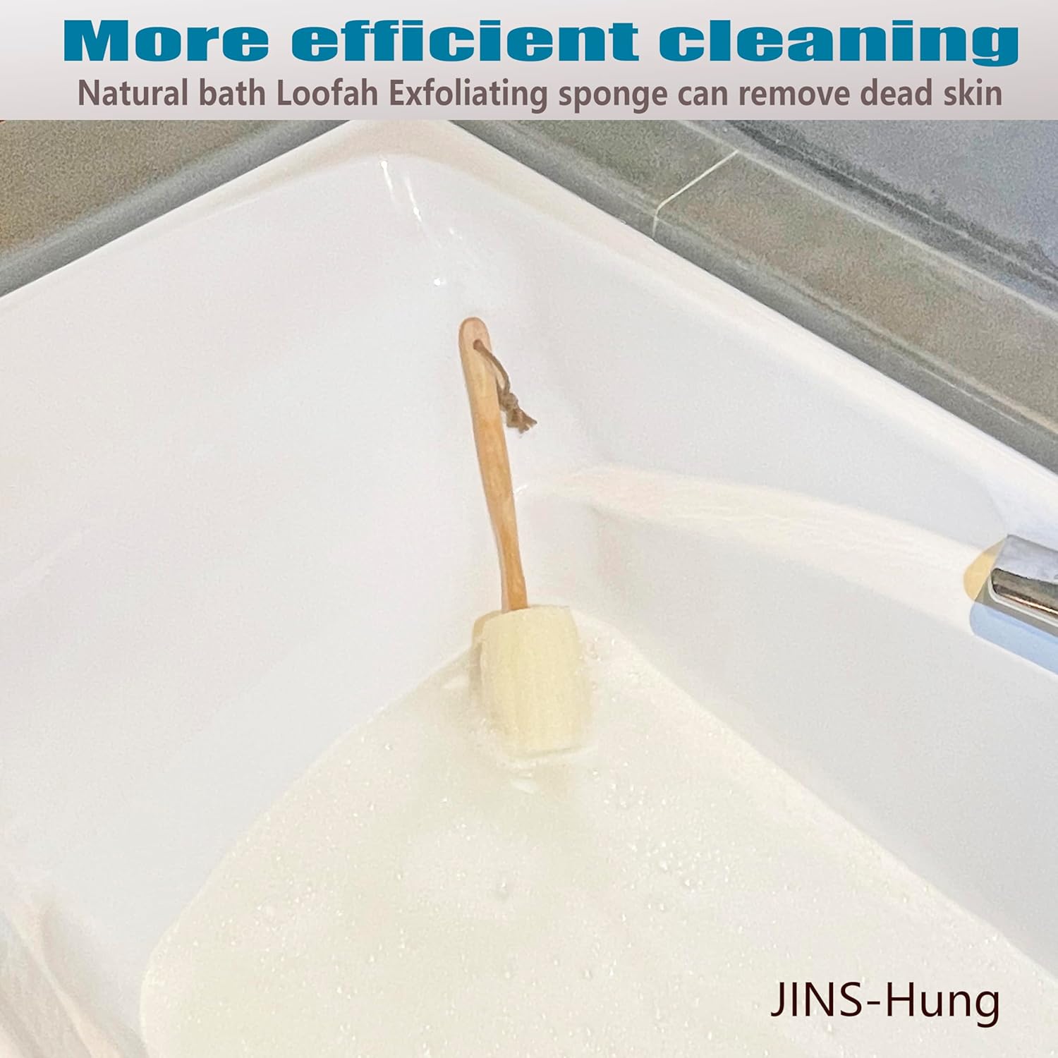 Natural Loofah Exfoliating Bath Brush - Body luffa loofa Sponge On a Stick - Sponge Scrubber with Long Wooden Handle Back Brush for Men & Women - Bath Spa Shower (1 Pack)