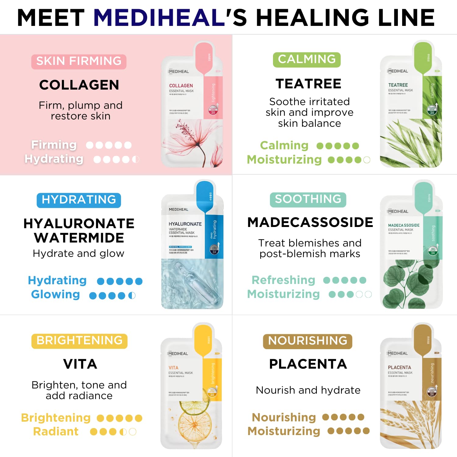 Mediheal Official Best Korean Sheet Mask - Collagen Essential Face Mask Lifting and Firming For All Skin Types Value Sets (20 Count)