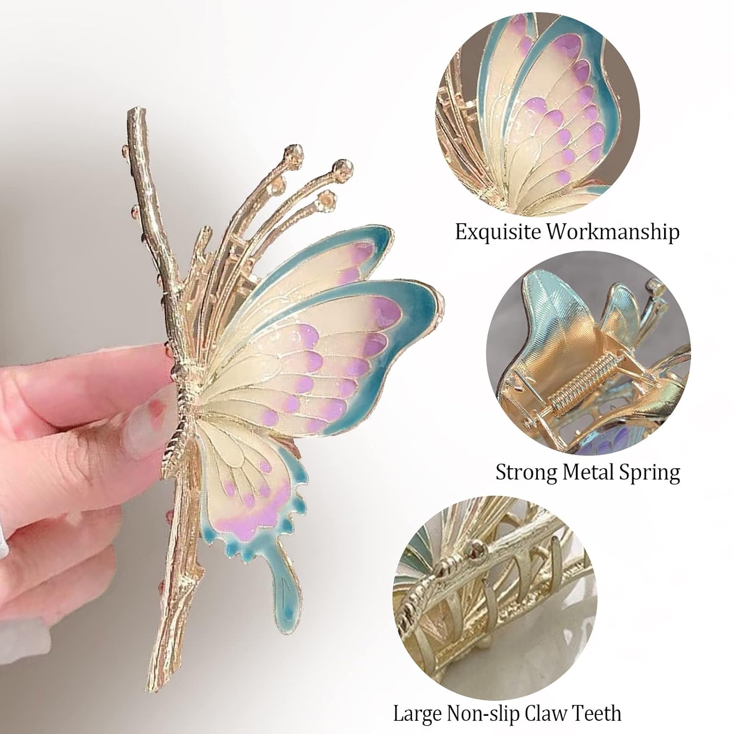 6 Pcs Hair Claw Clips for Women, Large Strong Metal Butterfly Hair Clips Flower Hair Clips for Women Thick Hair