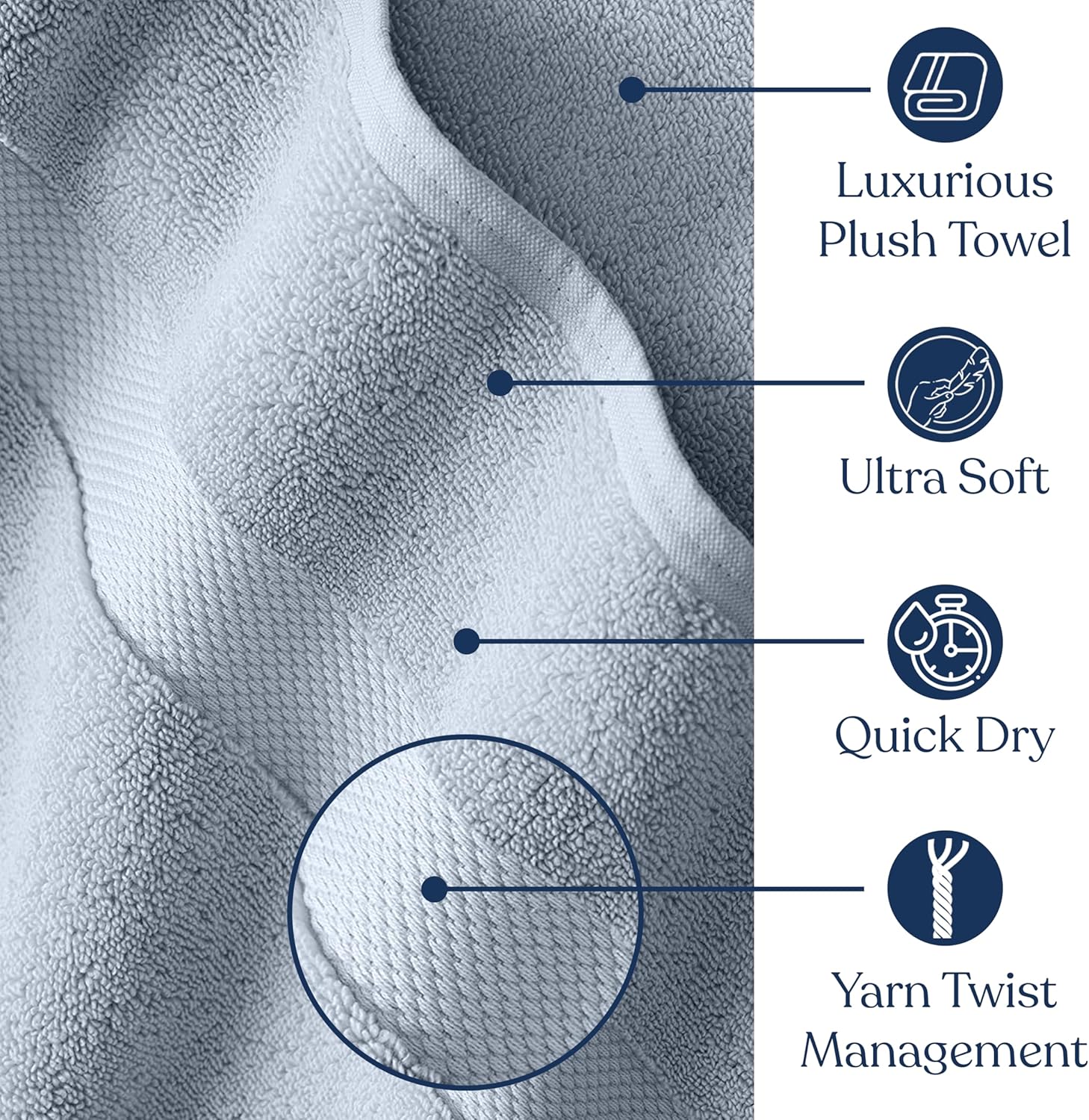 - FEATHER TOUCH & QUICK DRY TECHNOLOGY: Feather Touch gives long lasting softness without use of PVA. Quick dry technology ensures incredibly absorbent construction and weaves through Zero twist loom making these towels ultra-absorbent. Low Lint helps prevent shedding and Fade Resistance helps this towel maintain its color through washing.