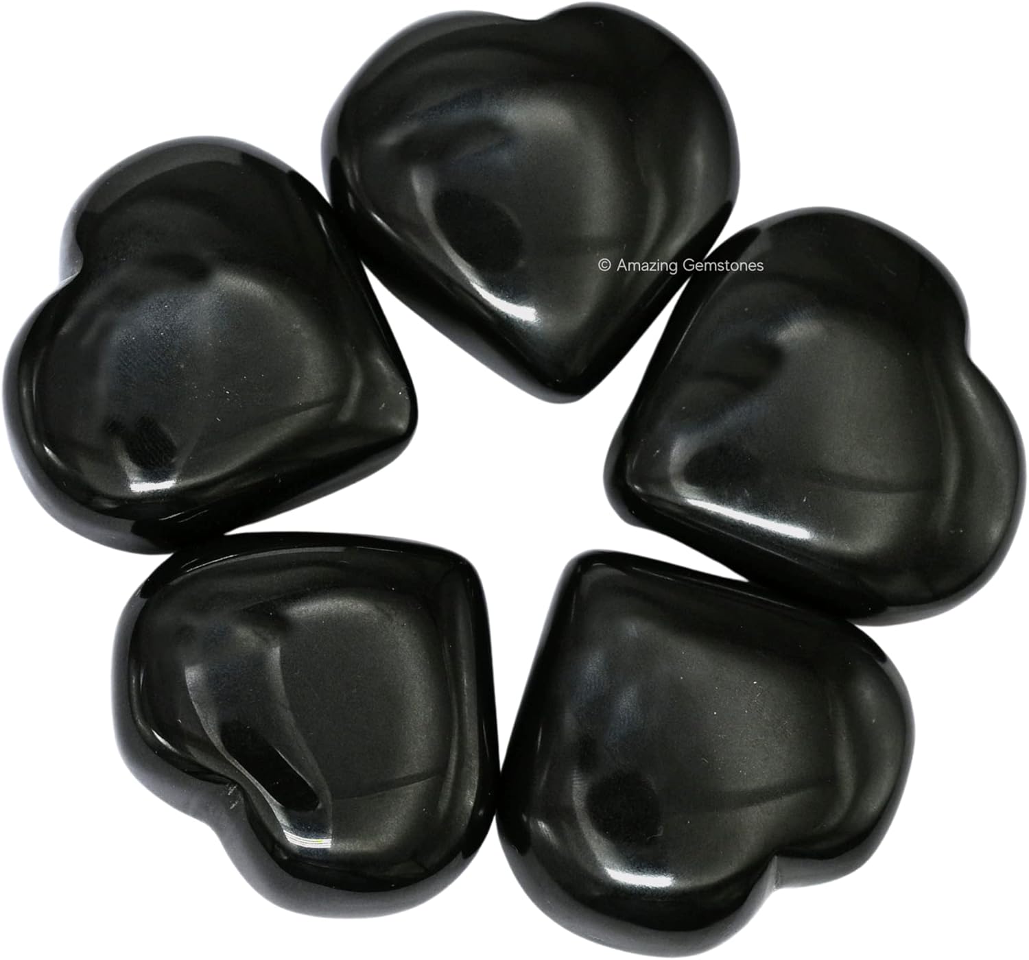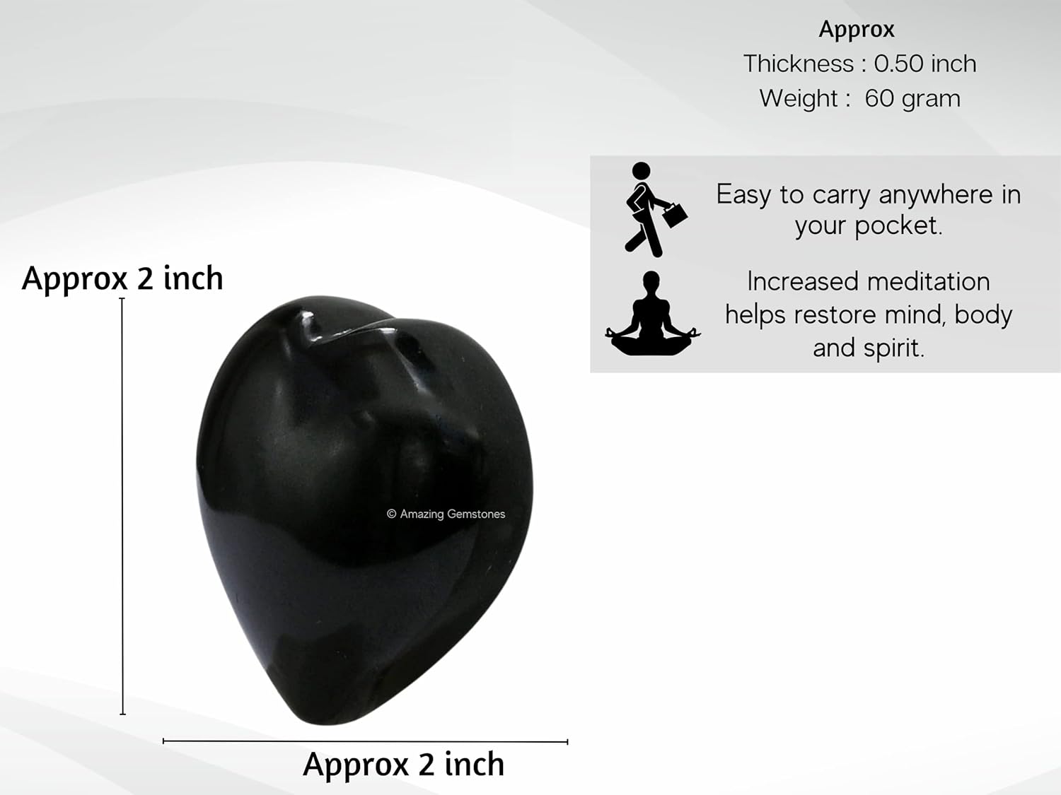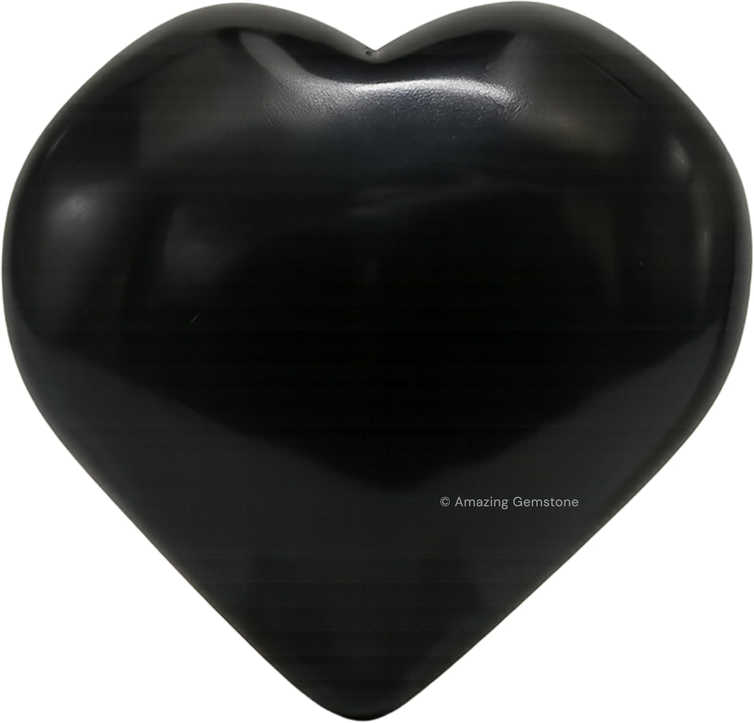 Amazing Gemstone Black Agate Crystal Heart Palm Stone - Pocket Massage Worry Stone for Natural Body Chakra Balancing, Reiki Healing and Crystal Grid
