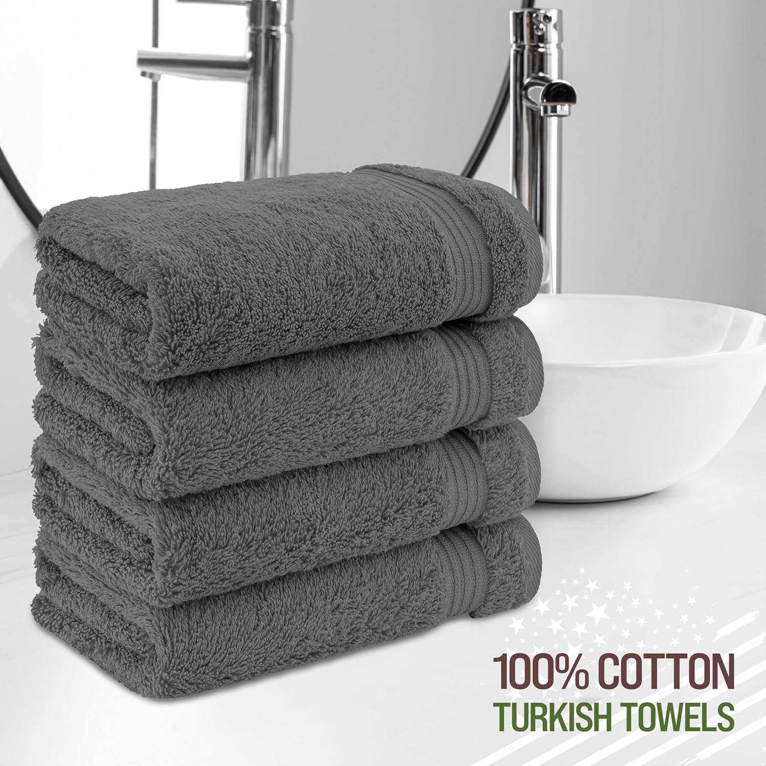 American Veteran Towel, Hand Towels for Bathroom Set of 4, 100% Cotton Turkish Hand Towel Sets, Soft Hand Face Towels, Dark Gray Hand Towels
