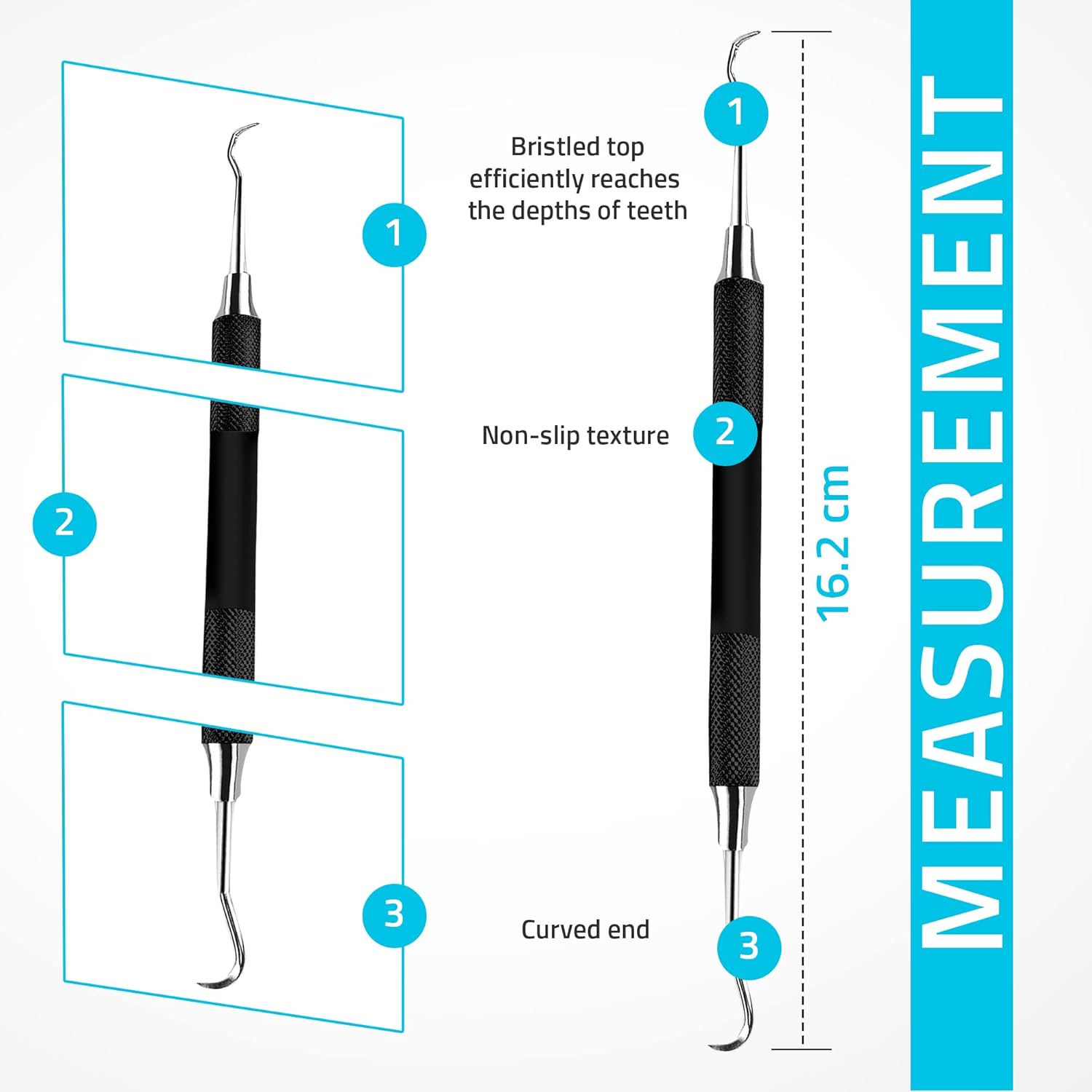 - Easy to Use - Our dental pick with the wide reach easily cleans the hard to see areas of your mouth. Also, plaque remover for teeth can help you clean the spots you miss in your daily brushing and flossing. Convenient to remove tough oral stains, food debris and tartars between your teeth and gums.