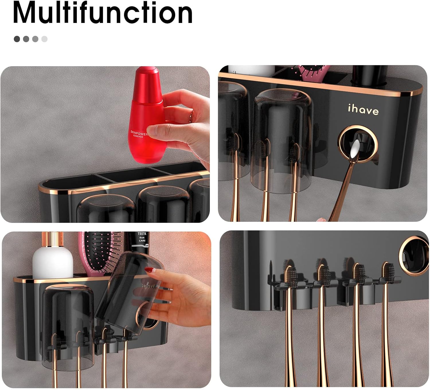 iHave Toothbrush Holders Bathroom Accessories with Toothpaste Dispenser, 2 Cups Toothbrush Holder Wall Mounted Bathroom Decor