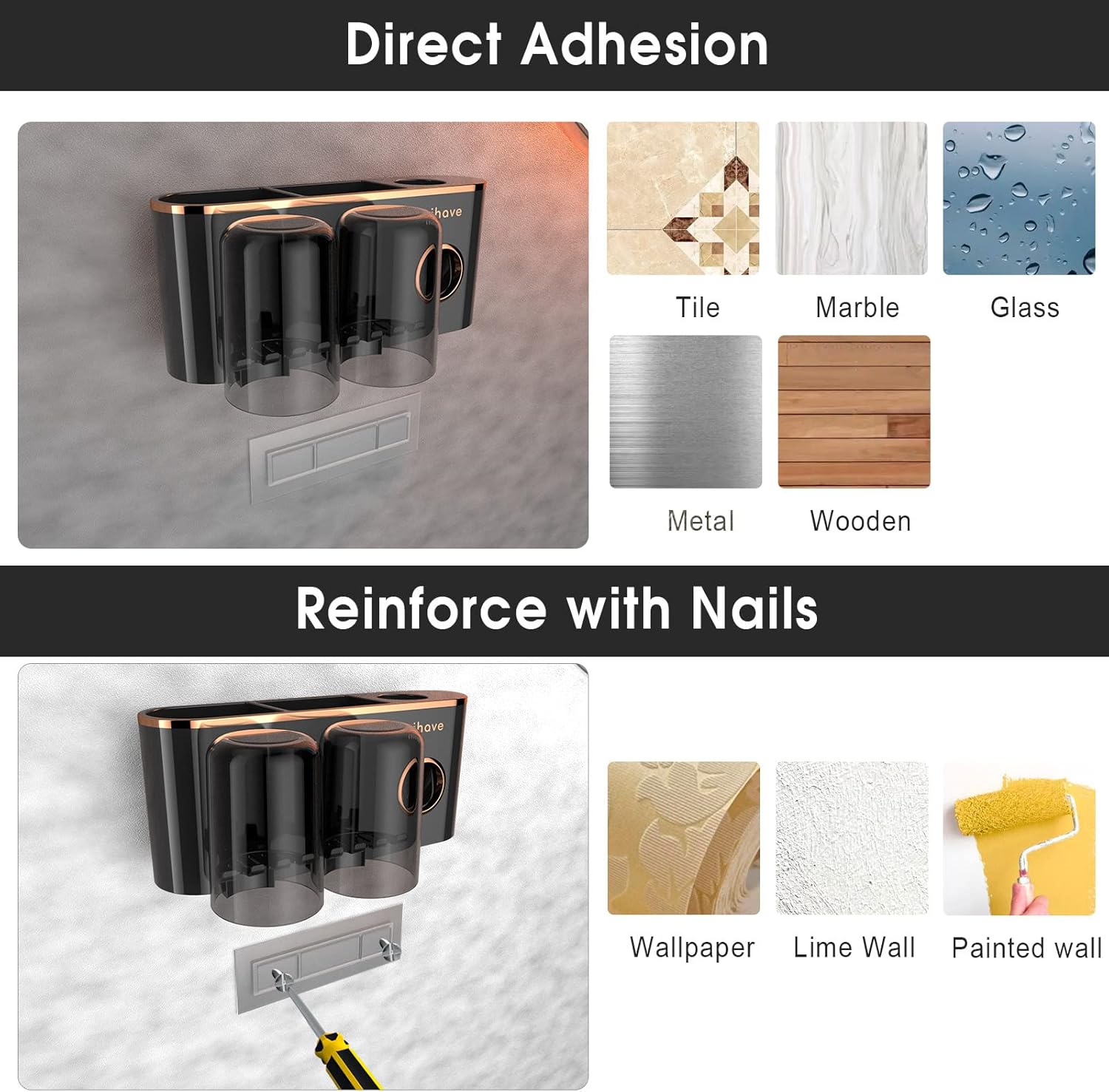 - Multifunction: This toothbrush holder bathroom organizer comes with a toothpaste dispenser, so you can easily squeeze toothpaste without wasting it. The wall-mount toothbrush holders with upside-down cups are dust-proof and waterproof.