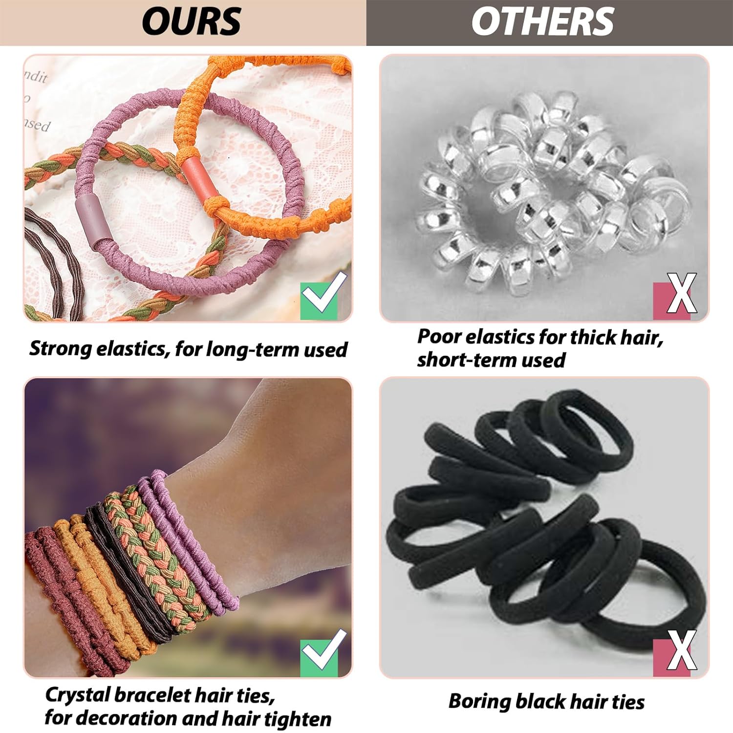 - ③【Two Usage】: The hair ties can be used for thick, curly hair and ponytails, holding hair well for a long time without hurting it. When the hair ties is on your wrist, it becomes a bracelet. It's so special to stack multiple hair tie bracelets as hand decoration.