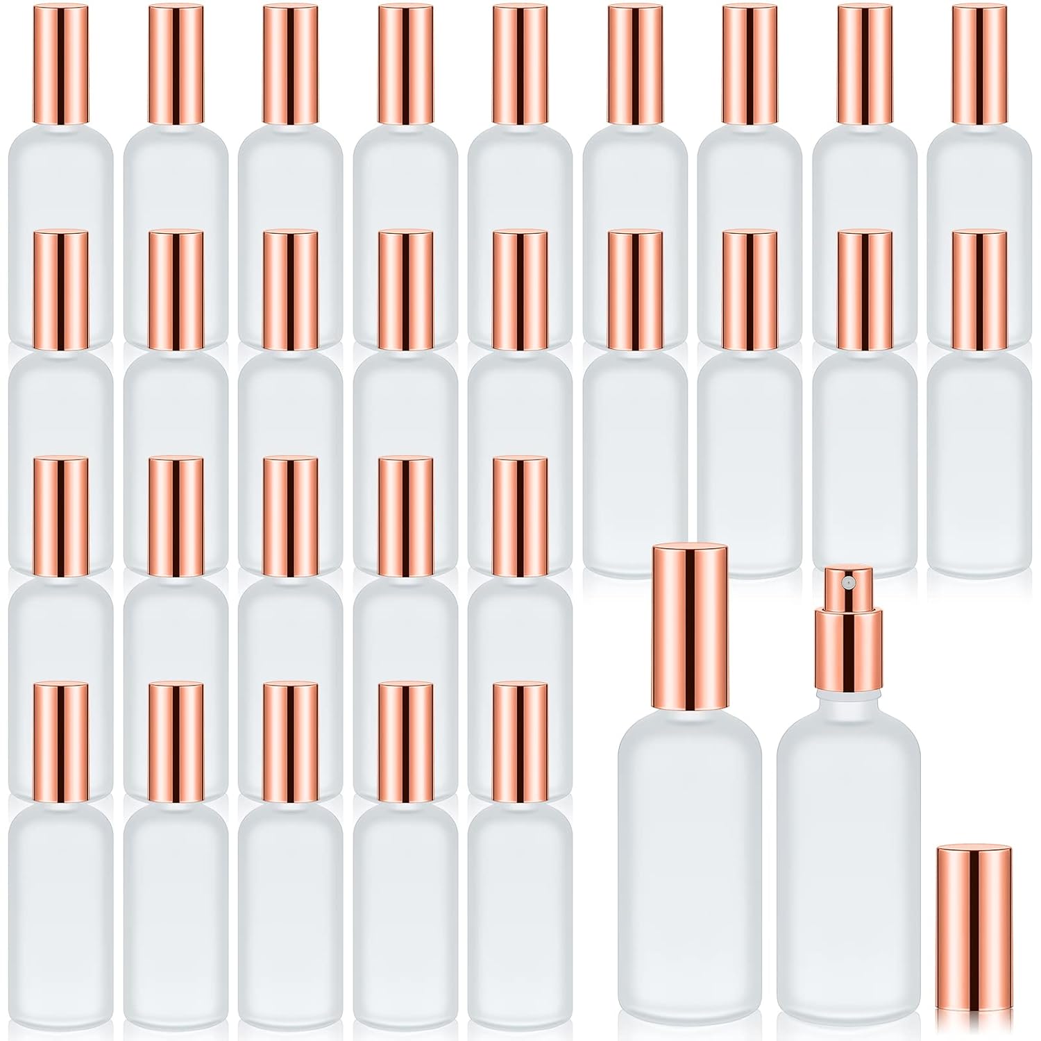 Roshtia 30 Pcs 3.4 oz/ 100 ml Rose Gold Glass Spray Bottle Refillable Perfume Atomizer Clear Decorative Empty Bottles with Fine Mist Sprayer Pump for Face Body Travel
