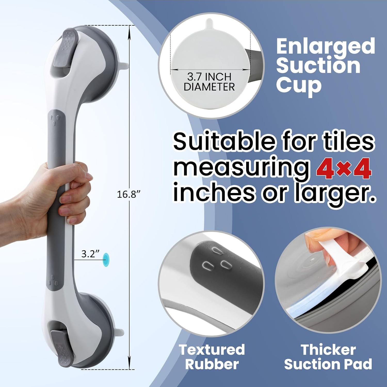 Grab Bars for Bathtubs and Showers 2 Pack Shower Handle, Heavy Duty Suction Grab Bar Bath Handrails for Seniors and Elderly, Bathroom Safety Grip No Drilling Waterproof Removable, Grey
