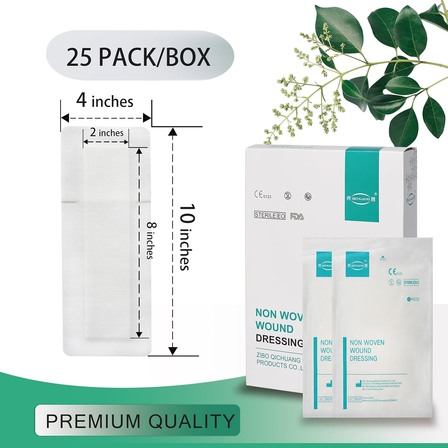4X10 Inches Large Sterile Adhesive Island Wound Dressing Bandages - Non Woven Cover with Bordered Gauze Pads,25 Individually Pack, High Absorbent, Medical Grade by QICHUANG(4X10INCHES-C25)