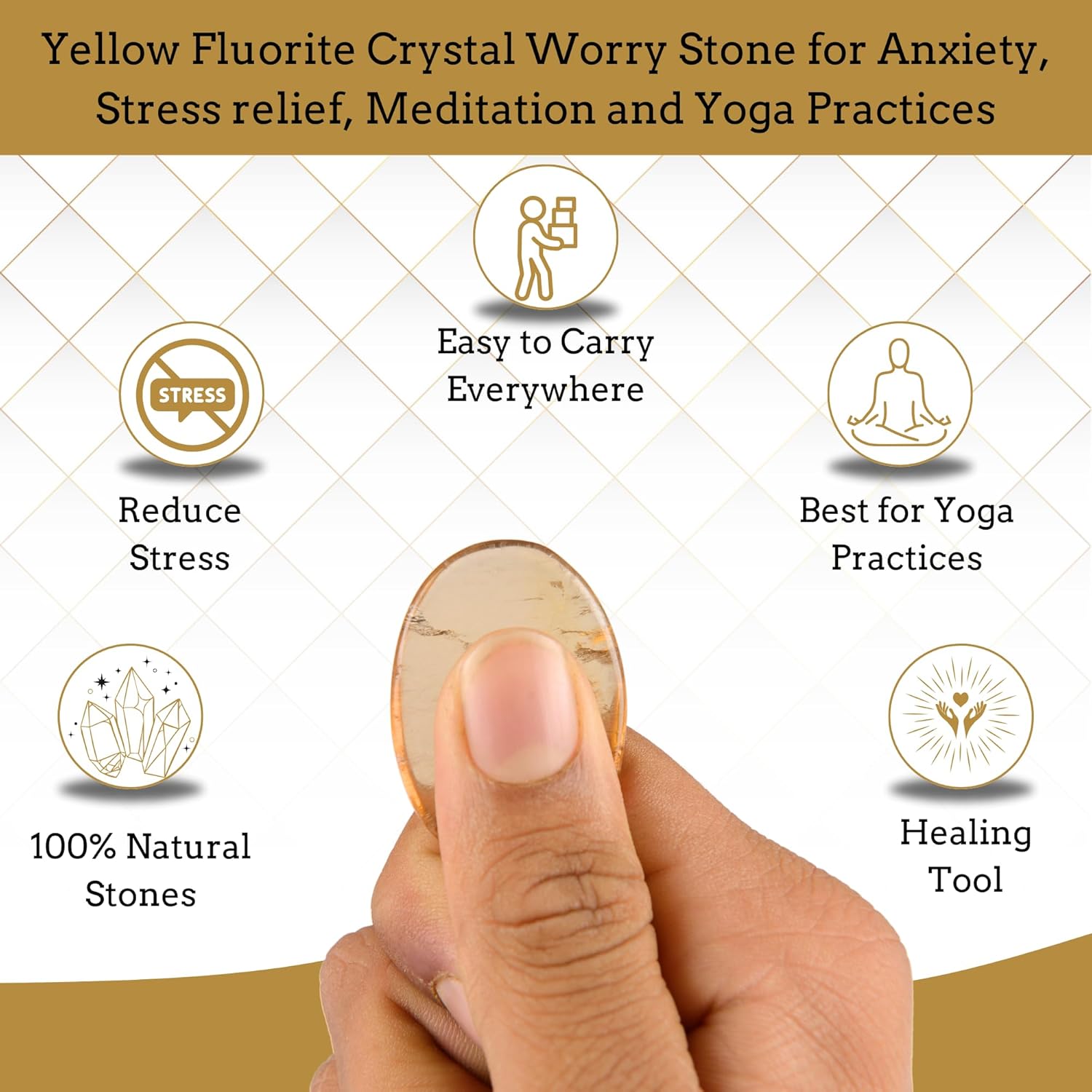 - Say Goodbye to Stress: If you are struggling with anguish in stressful situations, it’s time to find your calm and soothe your mind with the yellow flourite worry stone! Our healing crystals and stones are here to help you deal with anguish and stress and restore your balance.