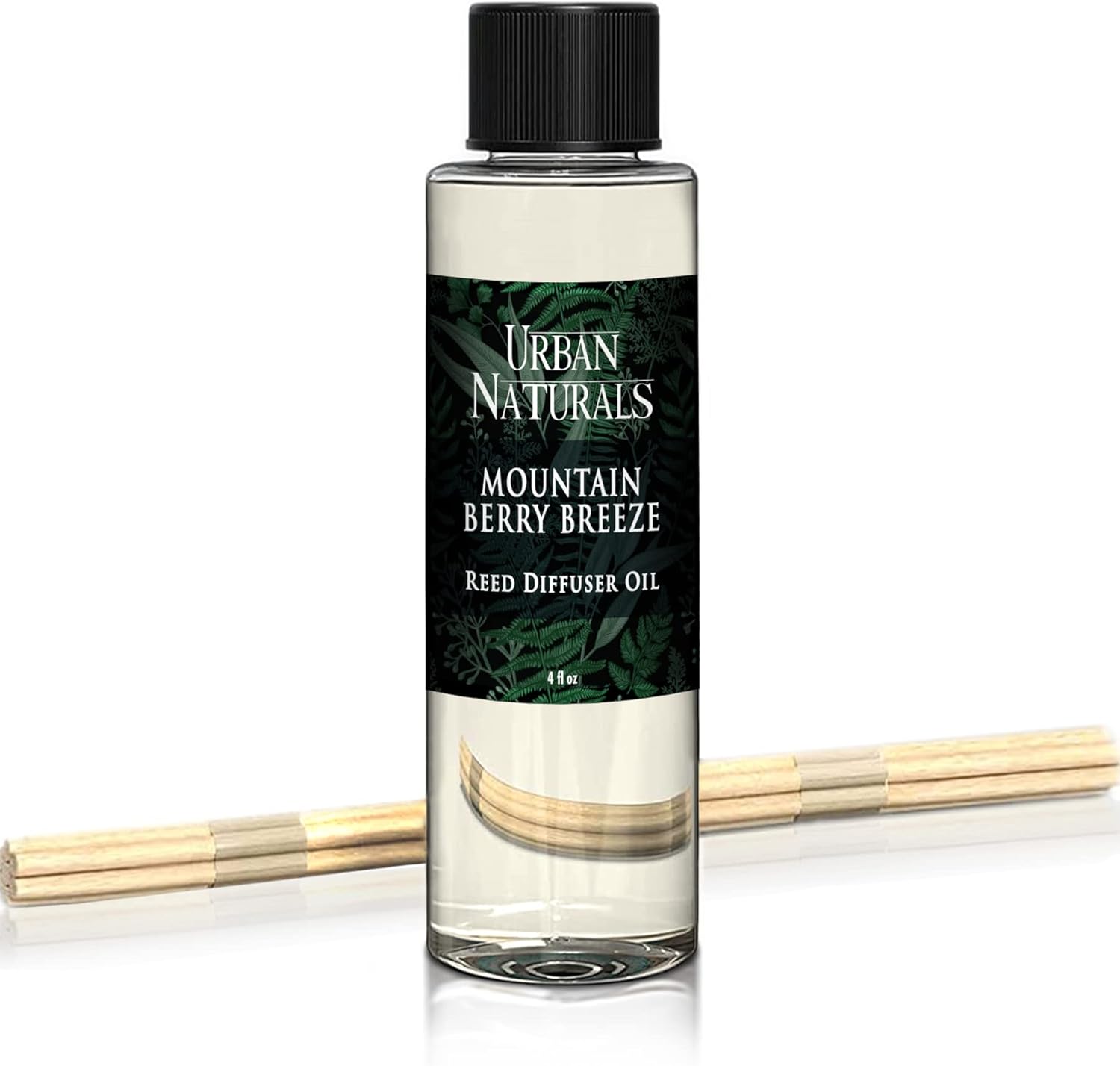 Urban Naturals Reed Diffuser Oil Refill, Mountain Berry Breeze Diffuser Oils with Juniper, Jasmine, Apple, 4 oz + Free Reed Sticks, Made in The USA