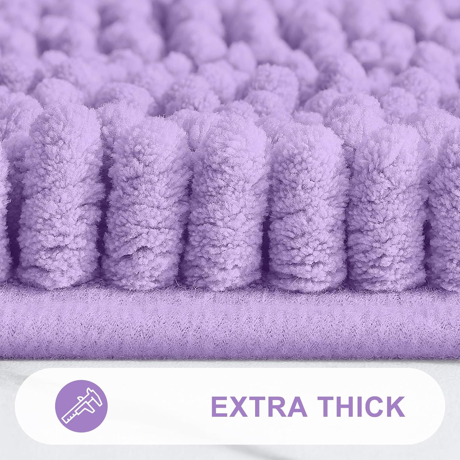 Grandaily Chenille Striped Bathroom Rugs 24x16, Extra Thick and Absorbent Bath Mats, Non-Slip Soft Plush Shaggy Shower Carpet, Machine Wash Dry, Bath Rug for Bathroom, (Small, Purple)