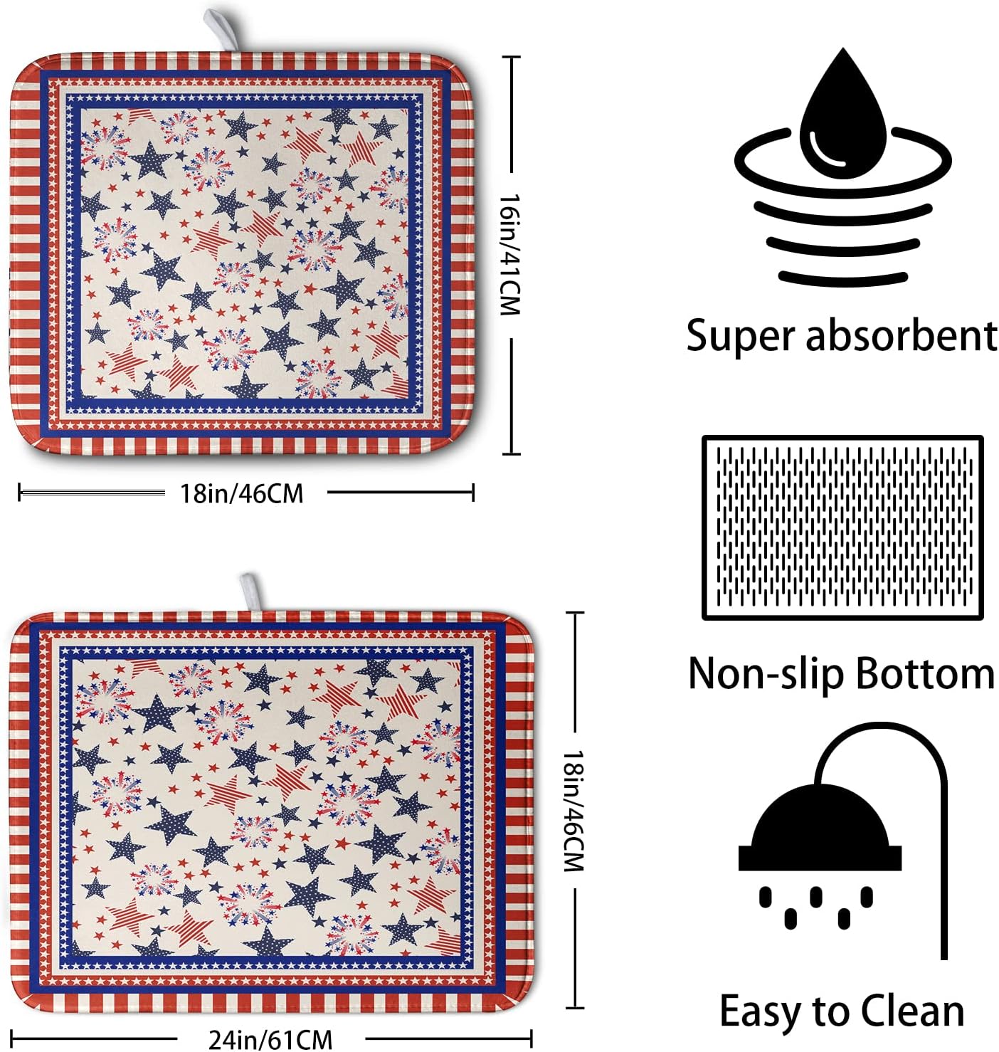 Happy 4th of July Patriotic Dish Drying Mat 16 x 18 Inch US Independence Day Vintage Star Kitchen Drying Mat Blue White Red Dish Drainer Mats Super Absorbent Dish Rack Pad for Coffee Bar Sinks