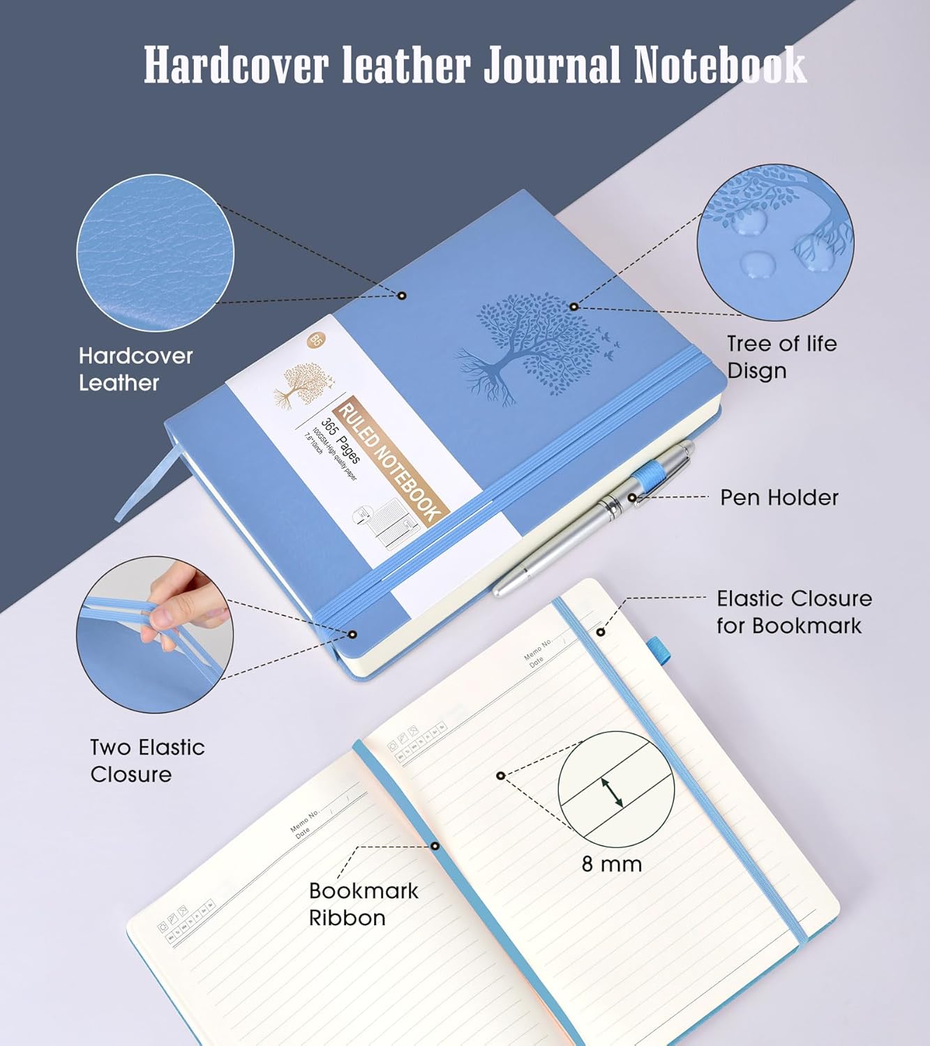 - 【180°Lay Flat Journal Notebook】The 180° lay flat design makes writing easier, reading more convenient, and taking notes more efficient.At the same time, the hardcover notebook is designed with1 elastic closure band & 1 elastic bookmark band. to make it tightly closed to protect your content, and the inner paper will not be curled and kept flat.