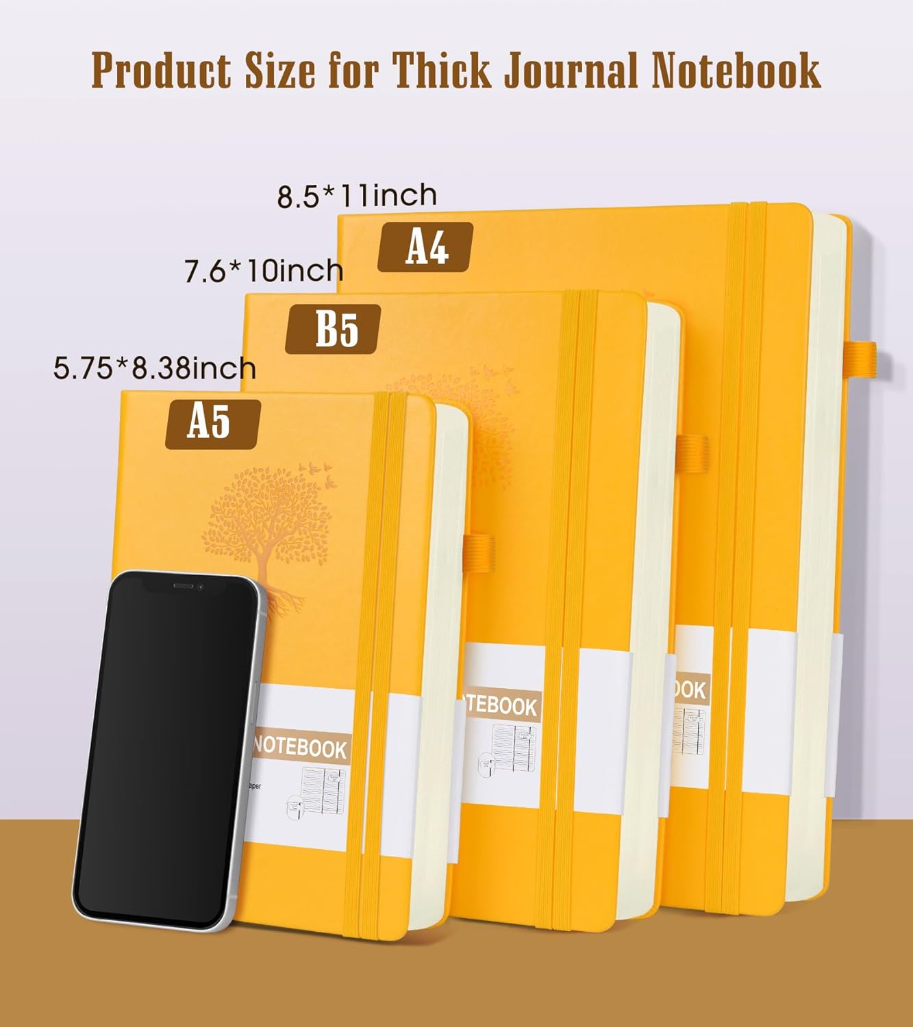 Lined Journal Notebook, 365 Pages B5 Journals for Writing College Ruled Notebook, Hardcover Leather Journal for Women Men, Daily Notebook for Work, Note Taking,100Gsm Thick Paper( 7.6'' X 10'' Yellow)