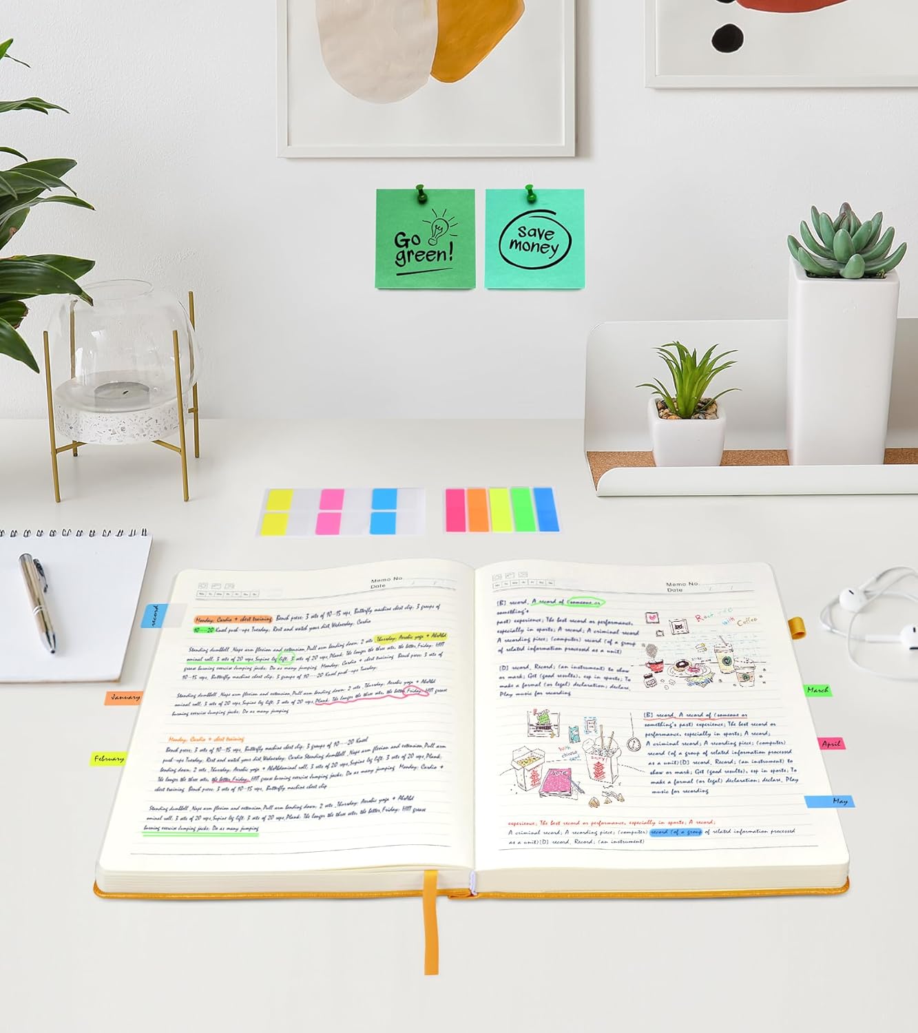 - 【Upgrade Lined Journal Notebook】Comes with 1 elastic closure band & 1 elastic bookmark band, more stable. An expandable inner storage pocket to keep track of appointment cards,notes,receipts,and more. 1 gift of multicolor index tabs stickers for papers classifying and marking.