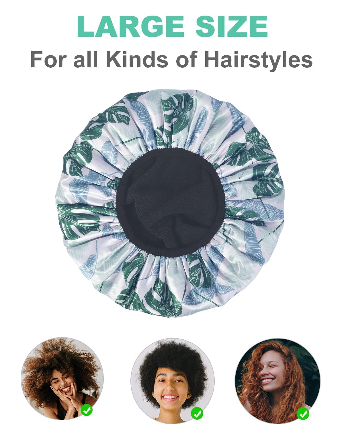 - 【TRIPLE-LAYER DESIGN】Our waterproof shower caps are made with a soft satin fabric, waterproof EVA cloth, and terry cloth for extra absorption. Say goodbye to soggy hair