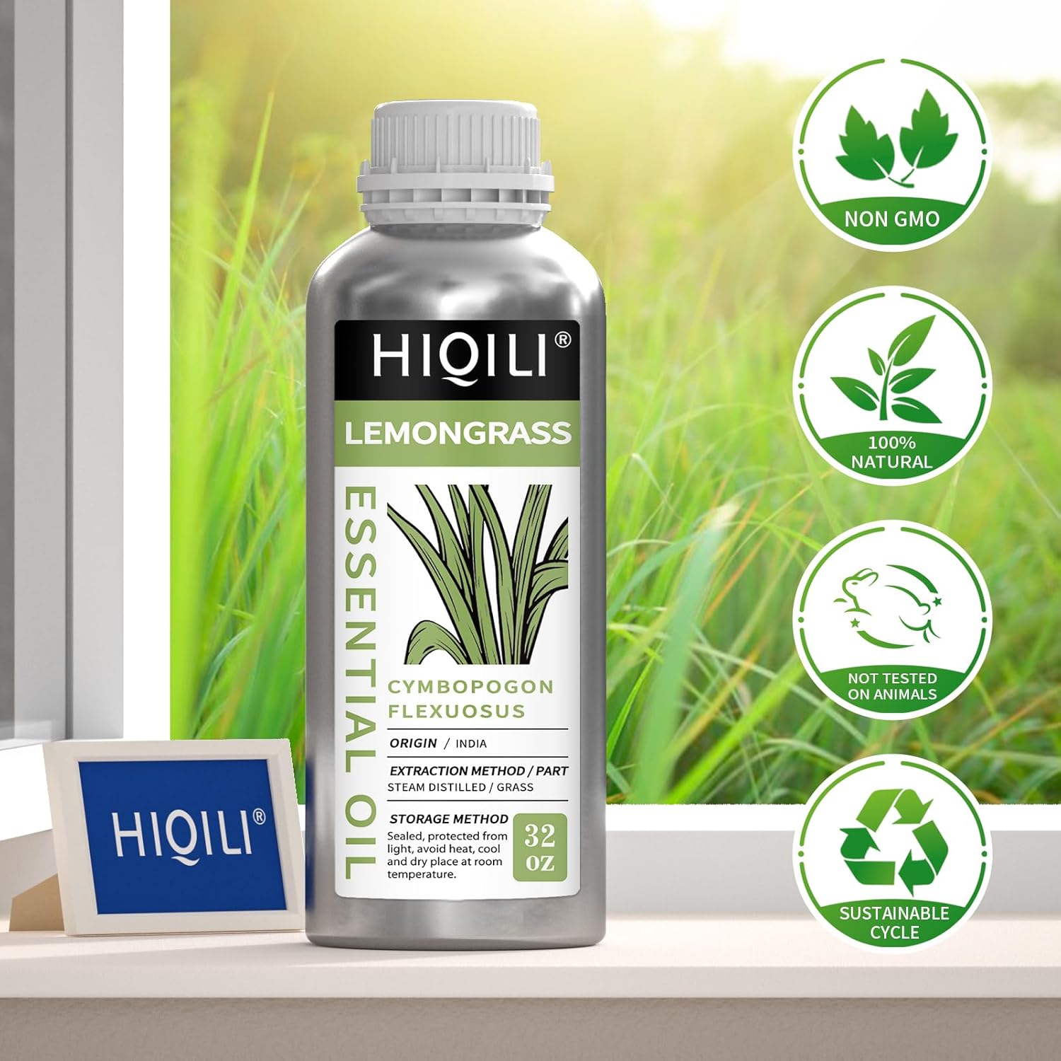 HIQILI 32 Fl Oz Lemongrass Essential Oil, 100% Pure Natural Undiluted Premium Oils