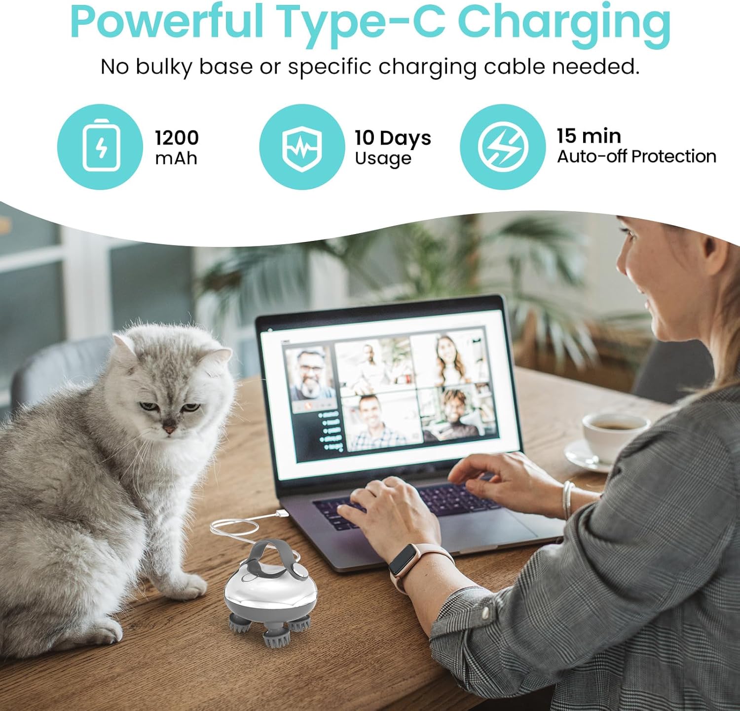 - 🏆【Upgraded Design – Type-C Charging, Handheld Rechargeable Scalp Massager with LED Light – Ideal Gift for Women, Men & Pets】Equipped with a universal Type-C charging cable, this upgraded scalp massager allows you to charge anytime, anywhere—no bulky charging base or special cable needed. Designed for comfort and safety, it gently stimulates the scalp to promote hair growth, improve blood circulation, and help relieve stress and tension. Perfect for women, men, and even pets.