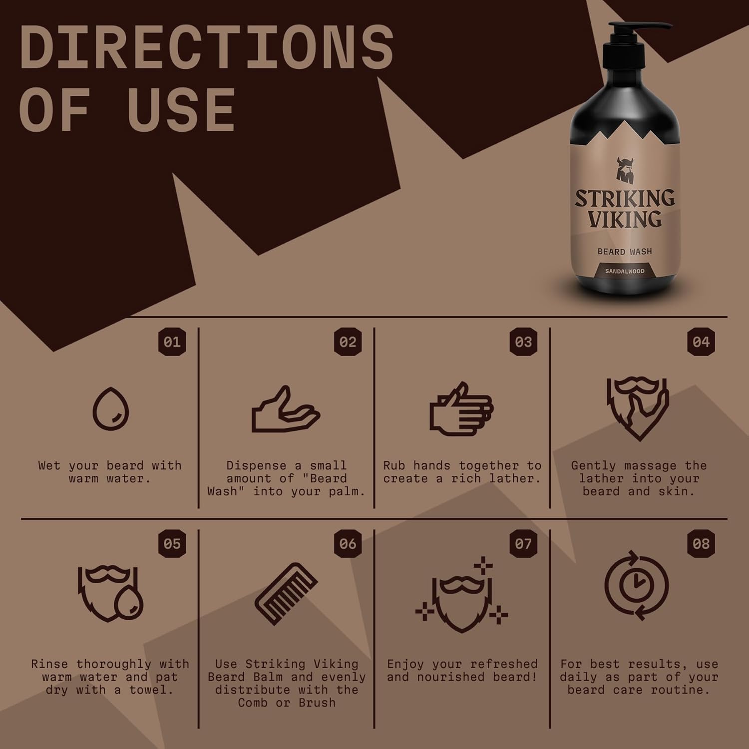 - Strong Beard Care: Striking Viking's Sandalwood Beard Wash keeps your beard game strong with deep hydration for all beard types. This beard wash conditioner tames itch and supports fuller growth without the fuss, thanks to naturally derived ingredients