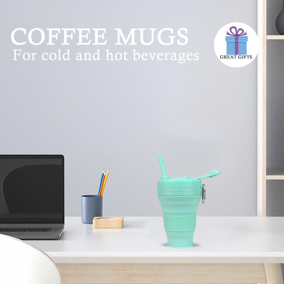 Silicone Coffee Cup with Straw lid Collapsible Cups for Traveling 20oz Lightweight Folding Water Mug for Picnic Hicking Camping Climbing