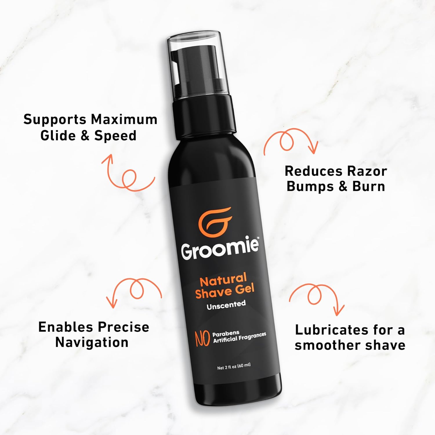 - ULTIMATE SMOOTHNESS & PROTECTION: Elevate grooming with Groomie's Natural Shave Gel. Pairing with Pre-Shave Oil, achieve a smooth, burn-free shave. Glide with precision for a flawless look.