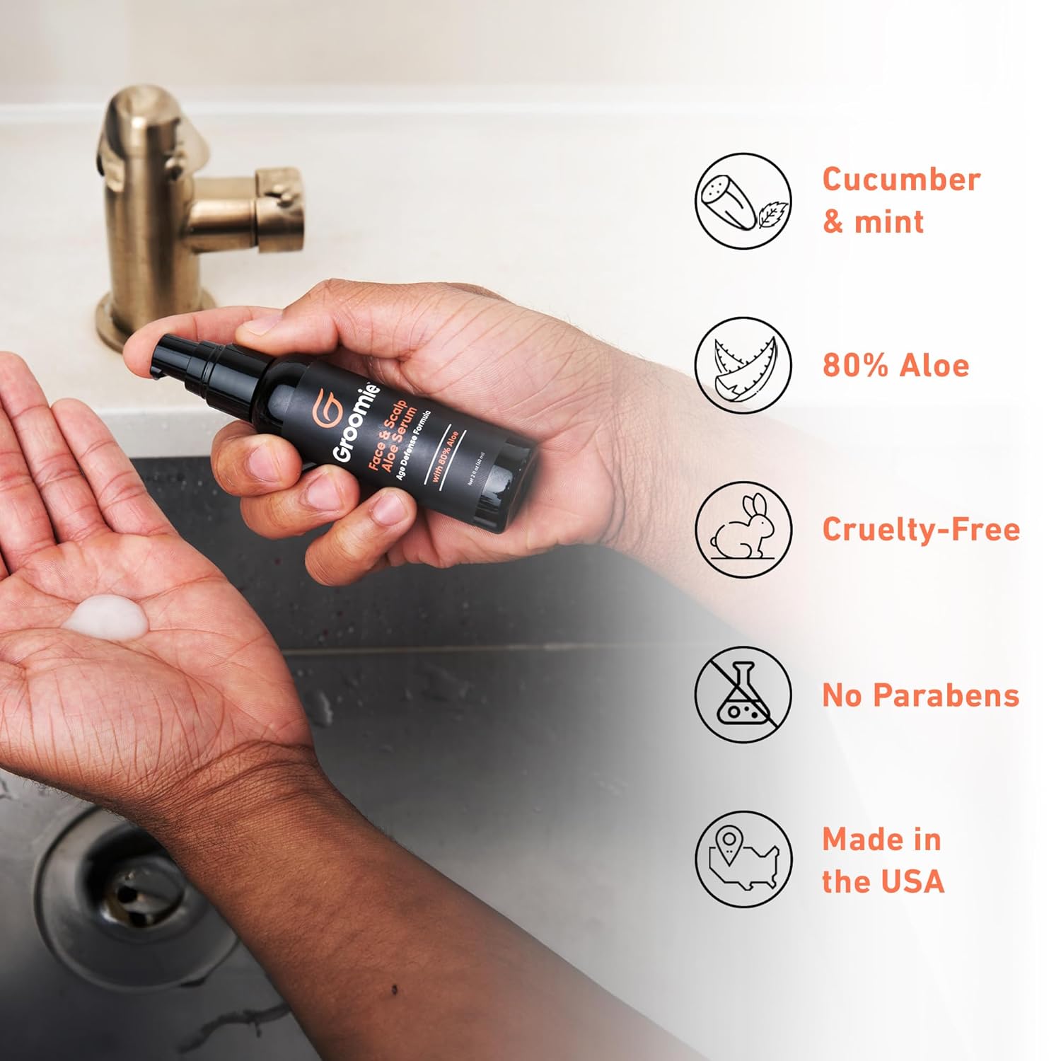 Groomie Face & Scalp Aloe Vera Serum - Hydrating, Soothing, and Moisturizing Skincare Formula, Daily Lightweight and Fast Absorbing, After-Shave Care to Keep Skin Hydrated All Day