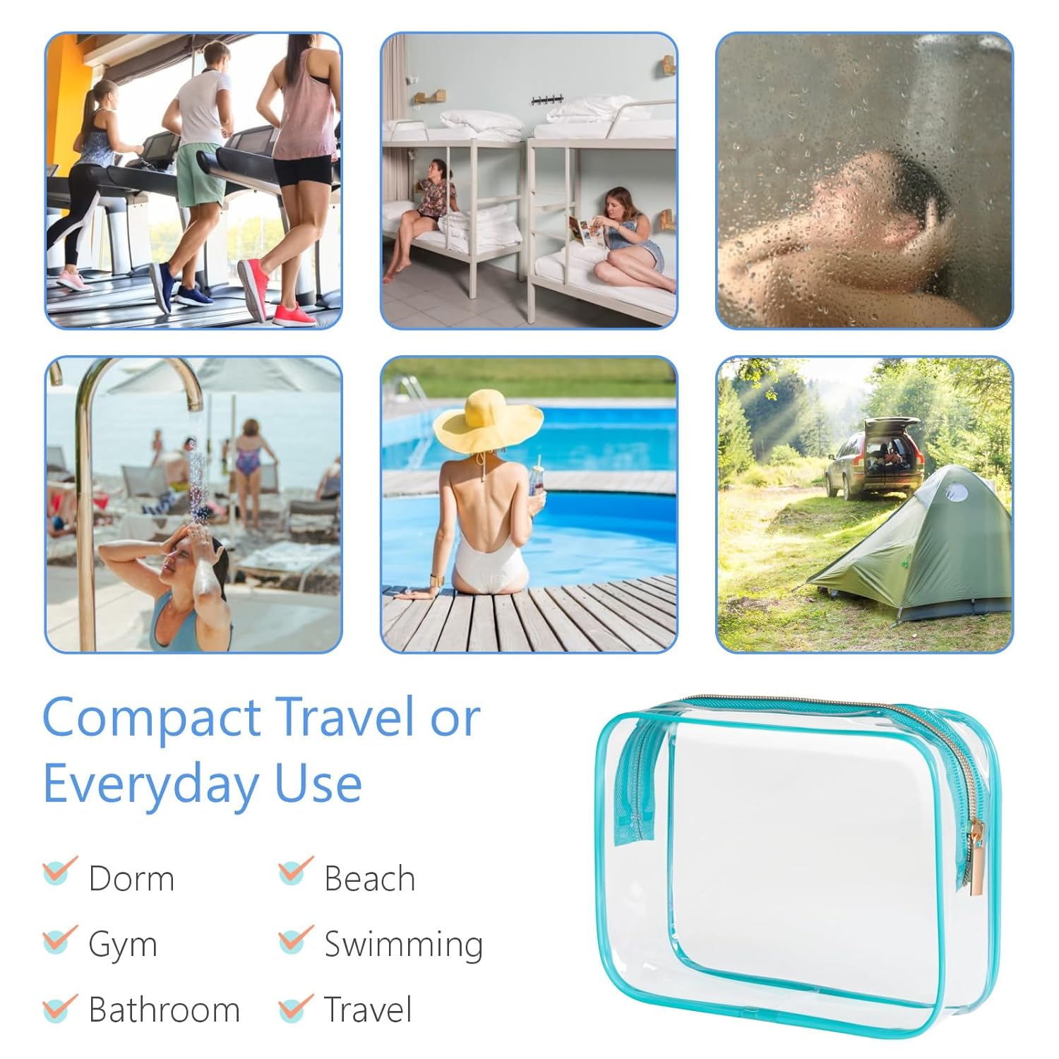 - Portable & Reusable: This quart size bag perfectly suits travel bottles, also great to store cosmetics, toiletries and small stuffs; Tips to remove the smell of the small travel toiletry bag: Please firstly wash the outside and inside of the clear makeup bag with soap and water; Please unzip the bag, then leave the bag in a well-ventilated place for a few days