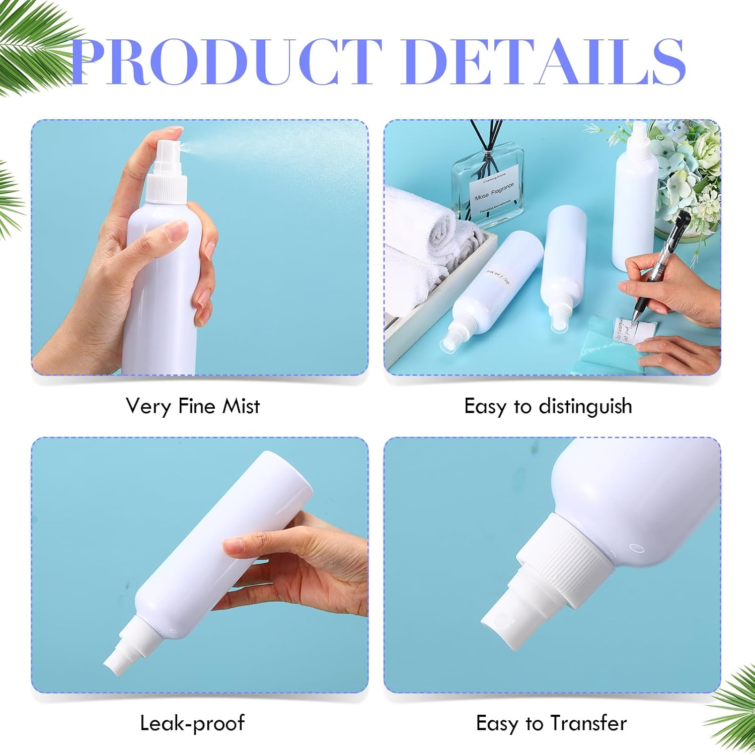 Eccliy 32 Pcs 8 oz Spray Bottles Fine Mist Cleaning Bottles Clear Empty Plastic Travel Sprayer Refillable Sprayer with Cap for Cleaning Solutions Oils Travel Perfumes(White,Colored)