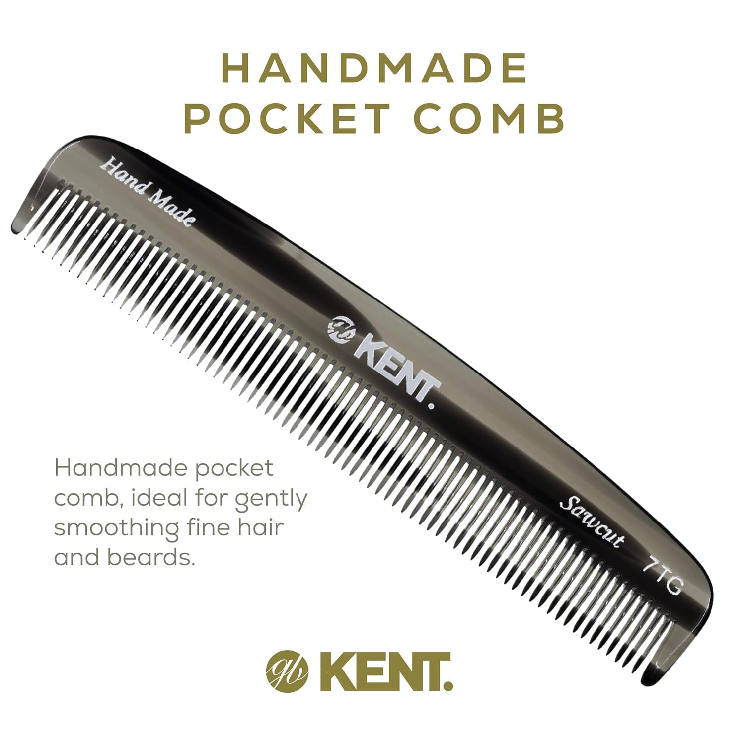 Kent 7T G All Fine Tooth Pocket Comb - Handmade Hair Grooming and Styling Comb for Travel, Mustache, Beard - Saw Cut and Hand Polished for Wet or Dry Use with Balms