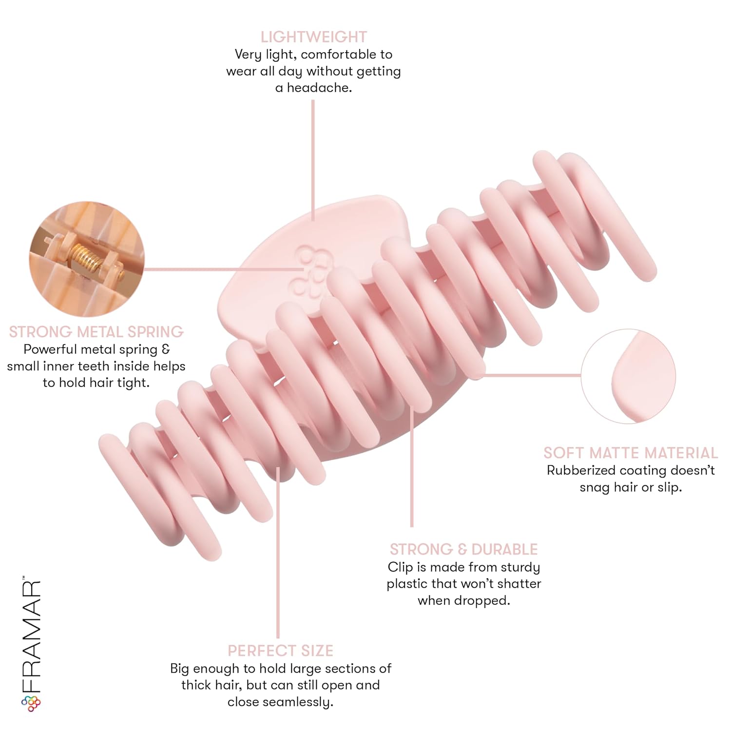 FRAMAR Large Claw Clips For Thick Hair – Large Hairclip Thick Hair, Big Hair Claws Clip For Women, Pink Hairclips, Pink Claw Clip - 4 Pack Non Slip Matte Finish