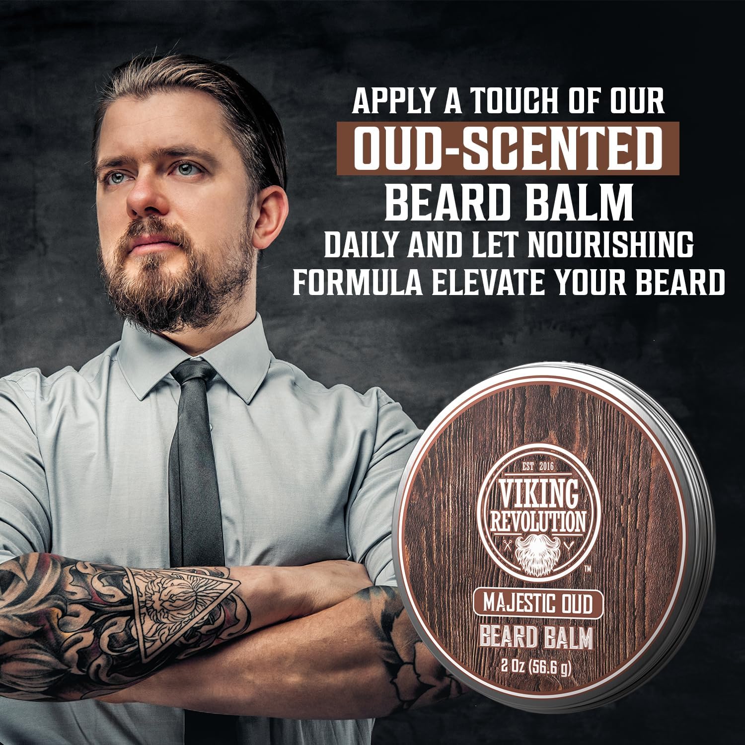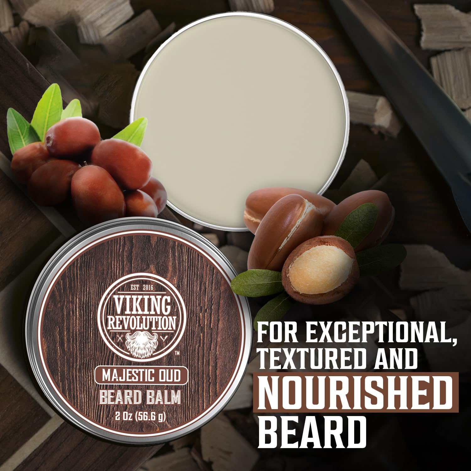 Viking Revolution Majestic Oud Beard Balm - Argan & Jojoba Beard Butter, Softener & Moisturizer with Beeswax - Wax for Men (2oz, 1 Pack)