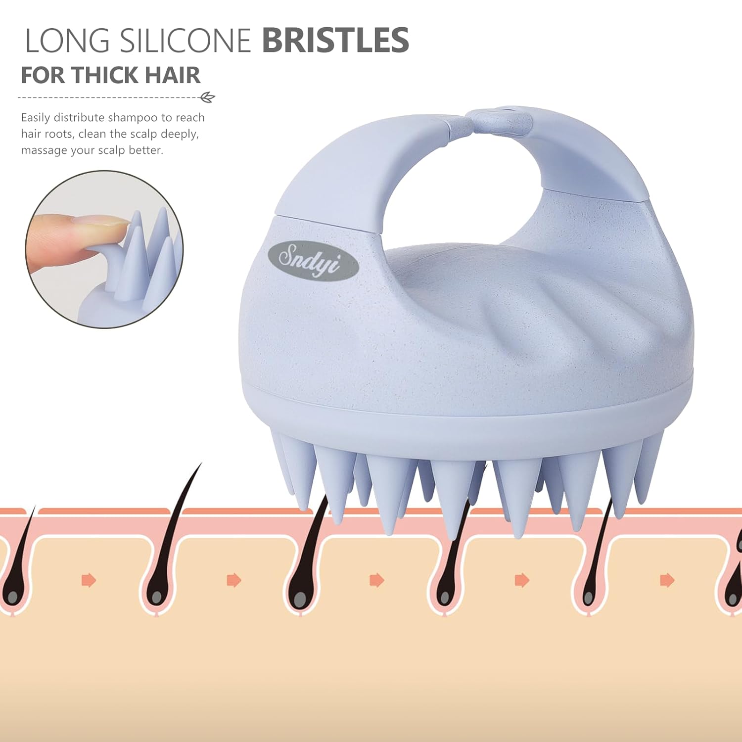 - Perfect Hair And Scalp Care: This scalp scrubber with long silicone bristles can easily penetrate your thick hair, distribute shampoo to reach hair roots, clean the scalp deeply. Compared with washing by hand, our scalp exfoliator brush can better massage your scalp in the shower, ease itchiness, reduce oil and dandruff effectively