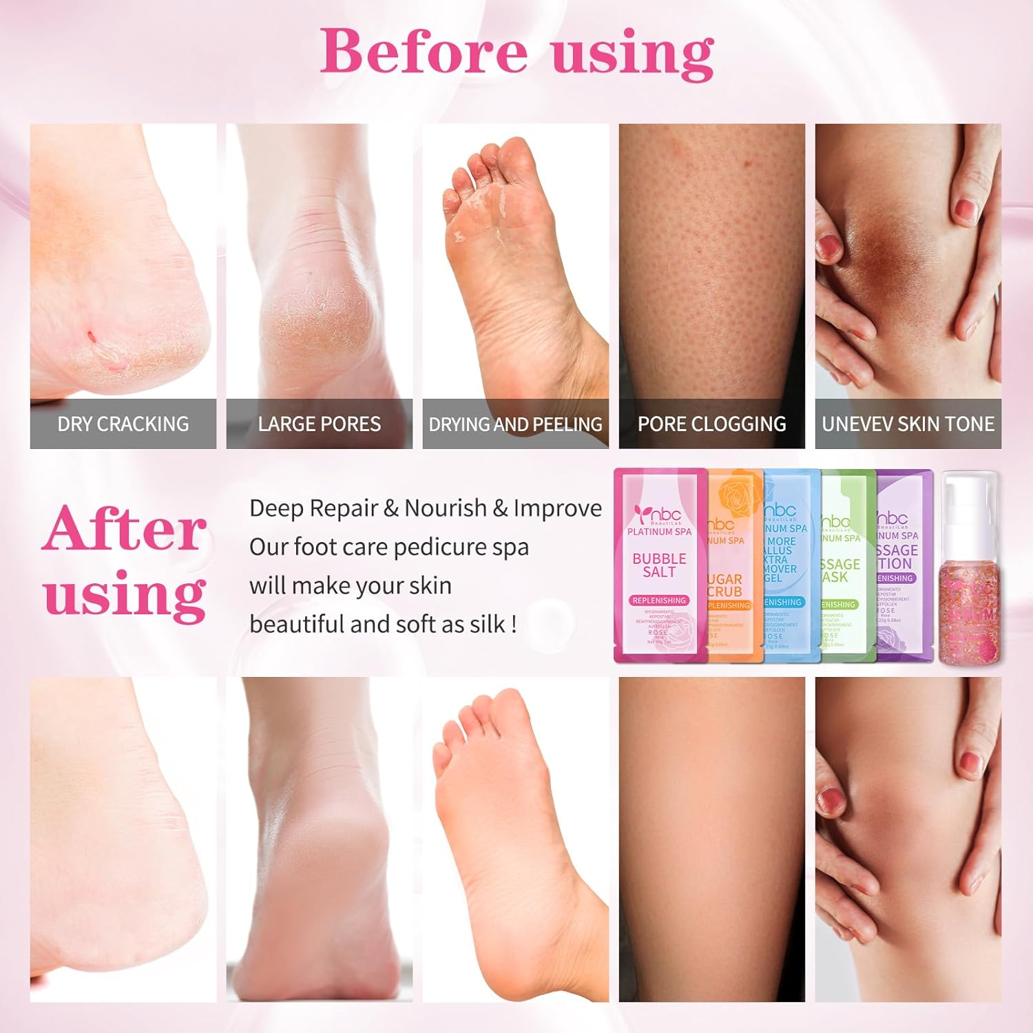 - ✨[6 Treatments] Our deluxe pedicure spa kit consists of 6 product treatments which can accelerate to restore the smooth skin of your feet. The serum in it can be used multiple times.
