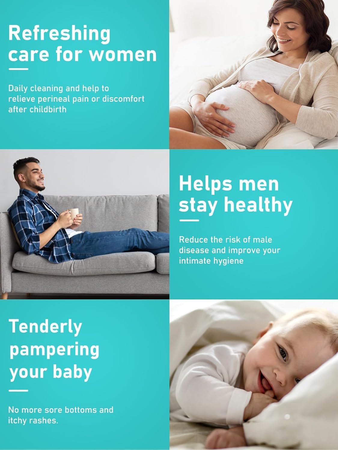 - ๐๐๐๐ฒ๐ป๐๐ถ๐ฎ๐น ๐ฃ๐ฒ๐ฟ๐๐ผ๐ป๐ฎ๐น ๐๐๐ด๐ถ๐ฒ๐ป๐ฒ ๐ฃ๐ฟ๐ผ๐ฑ๐๐ฐ๐ - Our postpartum wash bottle is not only suitable for postpartum new moms' care but also provides a refreshing experience for various situations such as camping trips, public toilet visits, pregnancy, postpartum recovery, patient or elderly care, baby diaper changes and is used to clean during menstruation or hemorrhoids. Compared to using toilet paper, using our bidet promotes faster recovery and provides a clean and comfortable experience.