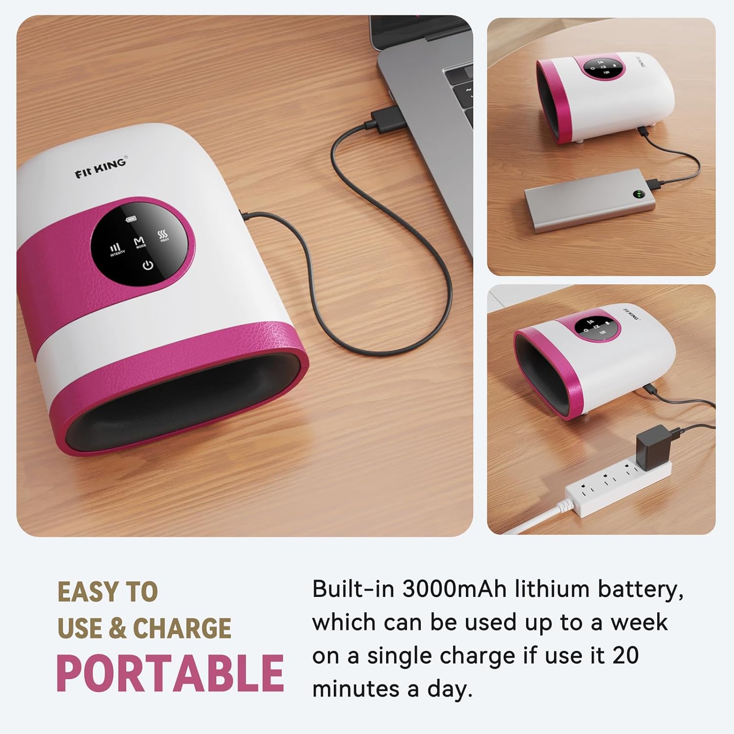 FIT KING Hand Massager with Heat for Hand Massage and Arthritis Carpal Tunnel Finger Numbness Relief - Cordless & Portable & Touch Screen - Birthday Gifts for Wife Mom Girlfriend