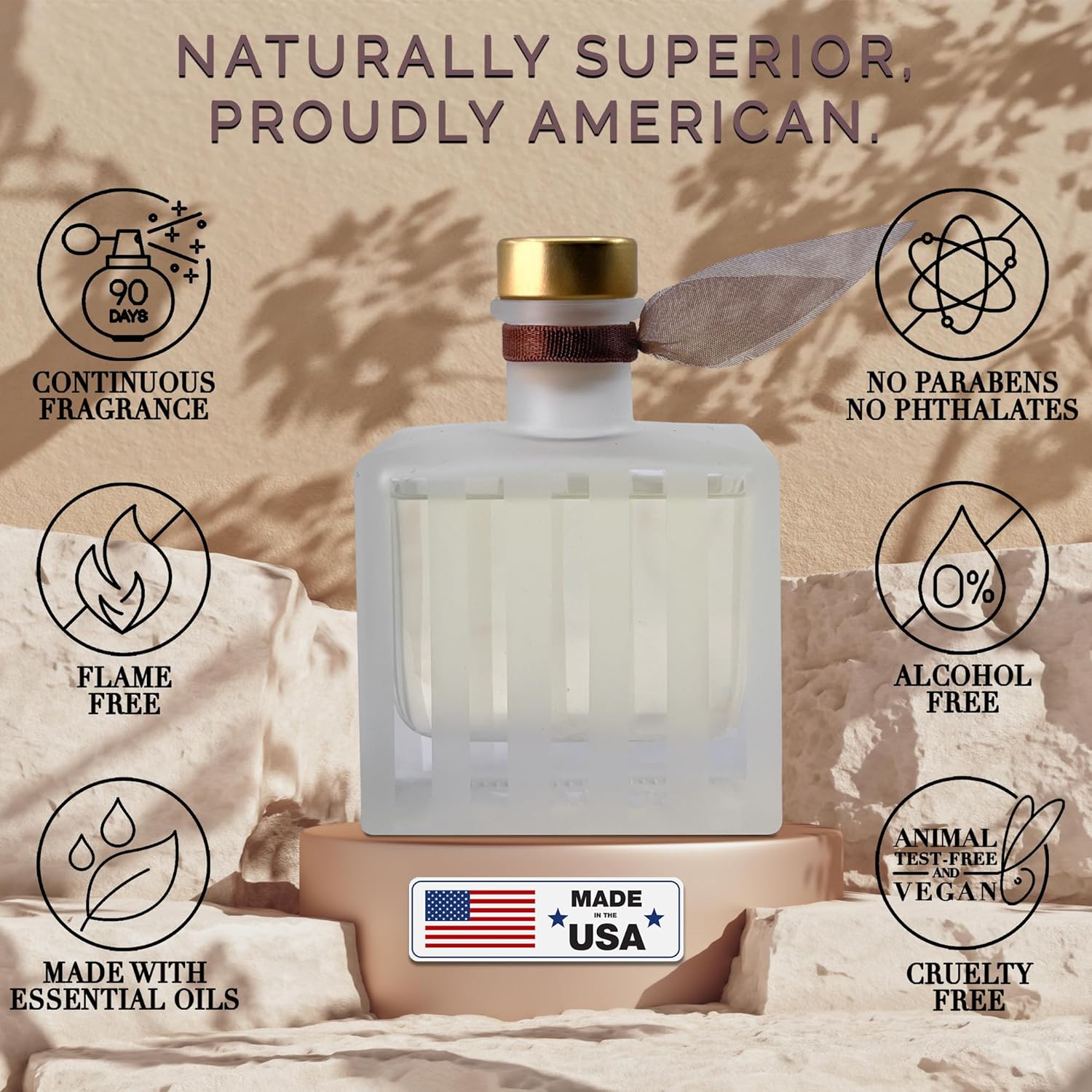 - BOUTIQUE QUALITY, AMERICAN-MADE – Handcrafted in small batches by our family-owned perfumery in the USA, each reed diffuser is made with clean ingredients and long-lasting fragrance. We never use harsh chemicals—just premium, room-filling scent that looks as good as it smells. A safe, stylish way to elevate your space with artisan care.
